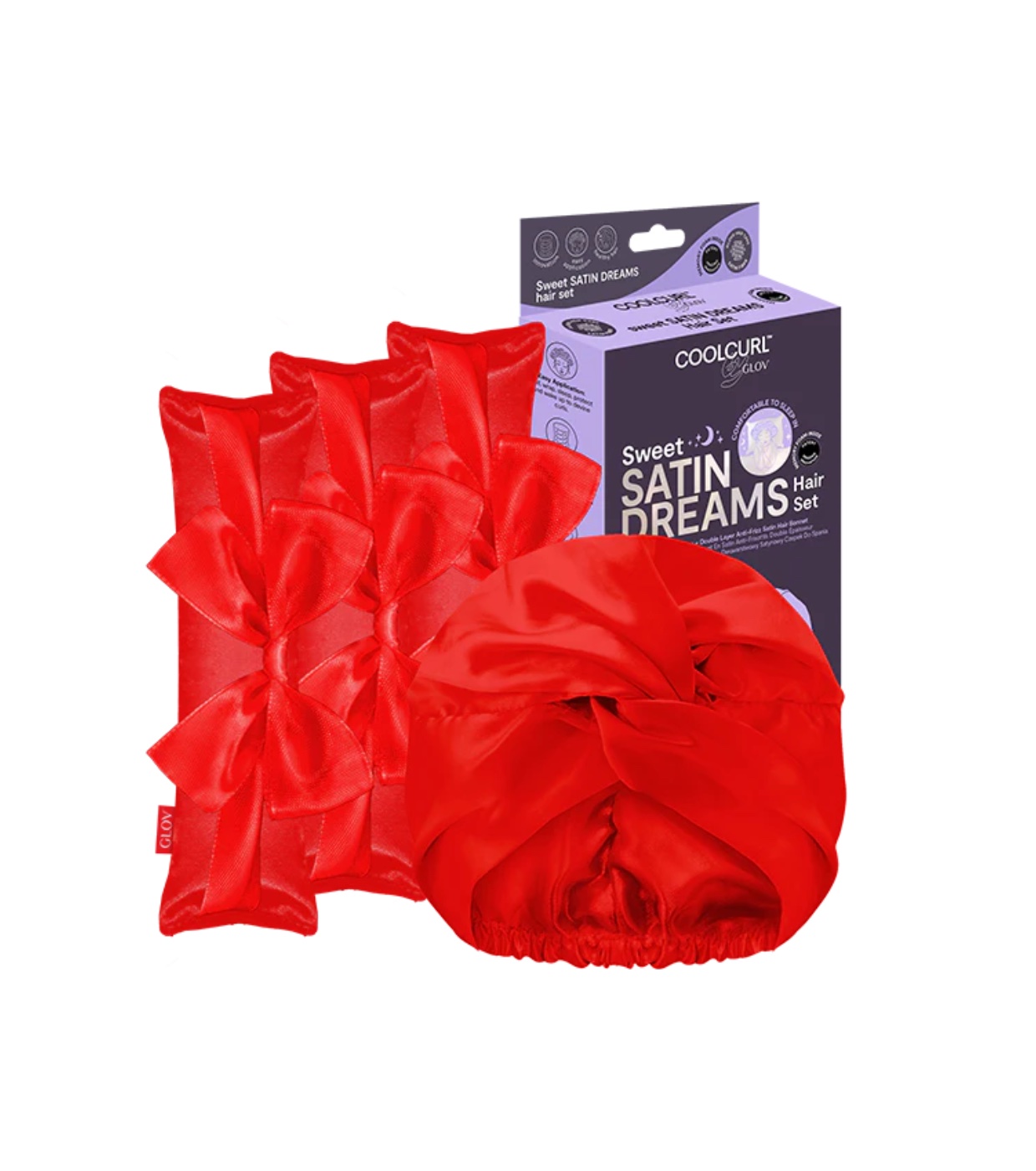 Descubra o conjunto de cabelo Sweet Satin Dreams , uma luxuosa combinação de rolos de fita e a touca de cetim anti-frizz de dupla camada GLOV para cachos sublimes e sem calor e manhãs sem frizz.