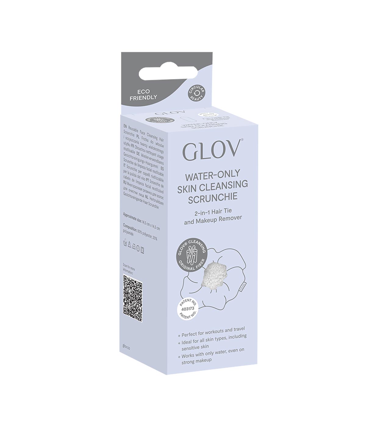 GLOV® Deep Pore Cleansing Skincare Scrunchie segura o cabelo e é o removedor de maquiagem ou refrescante de pele mais prático e patenteado, usando apenas água!