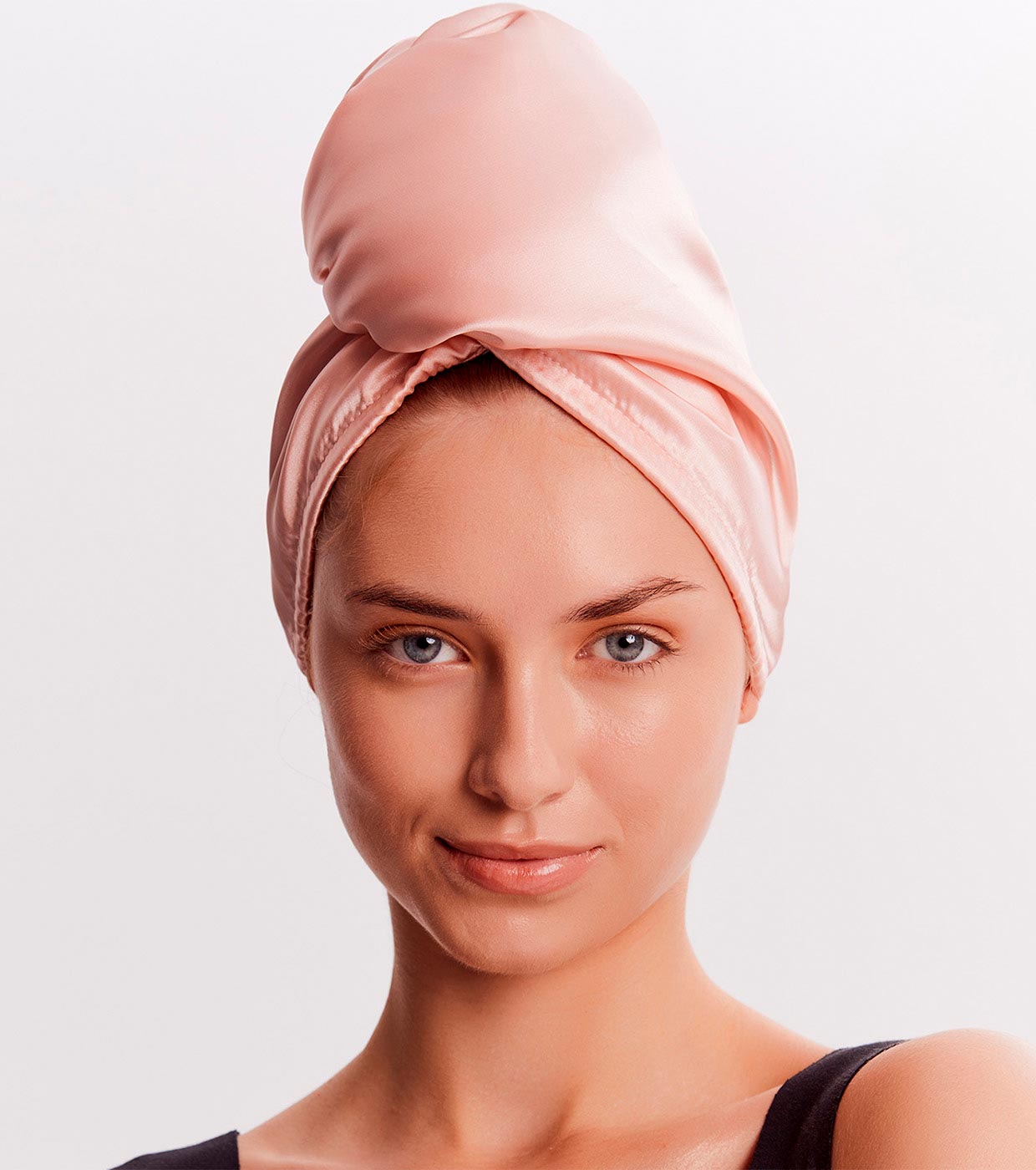GLOV - Toalha turbante de cetim e tecido - Rosa
