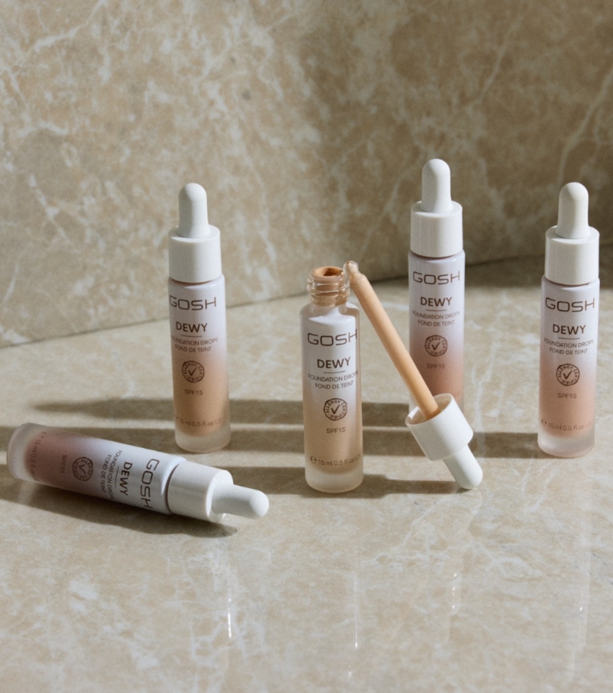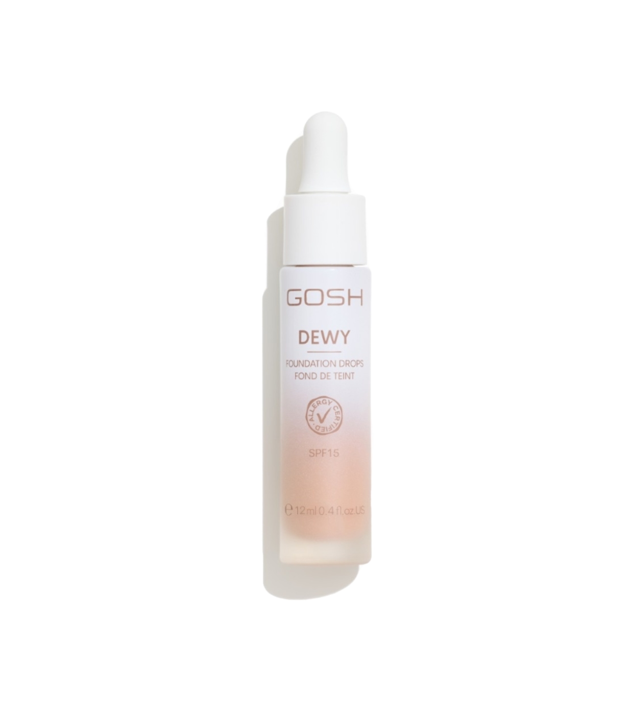 As Dewy Foundation Drops da Gosh são a base líquida perfeita para obter uma cobertura leve e luminosa e um efeito de "pele de vidro".