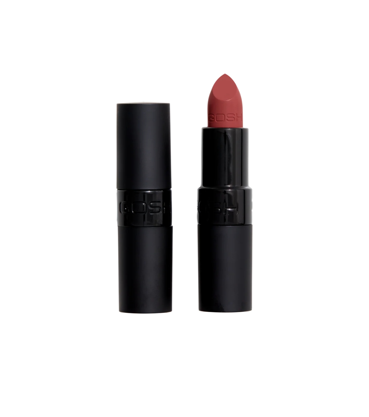O batom Velvet Touch da Gosh combina a elegância de um acabamento matte com uma textura cremosa e hidratante que desliza suavemente sobre os lábios, deixando uma cor intensa, uniforme e duradoura desde a primeira aplicação.