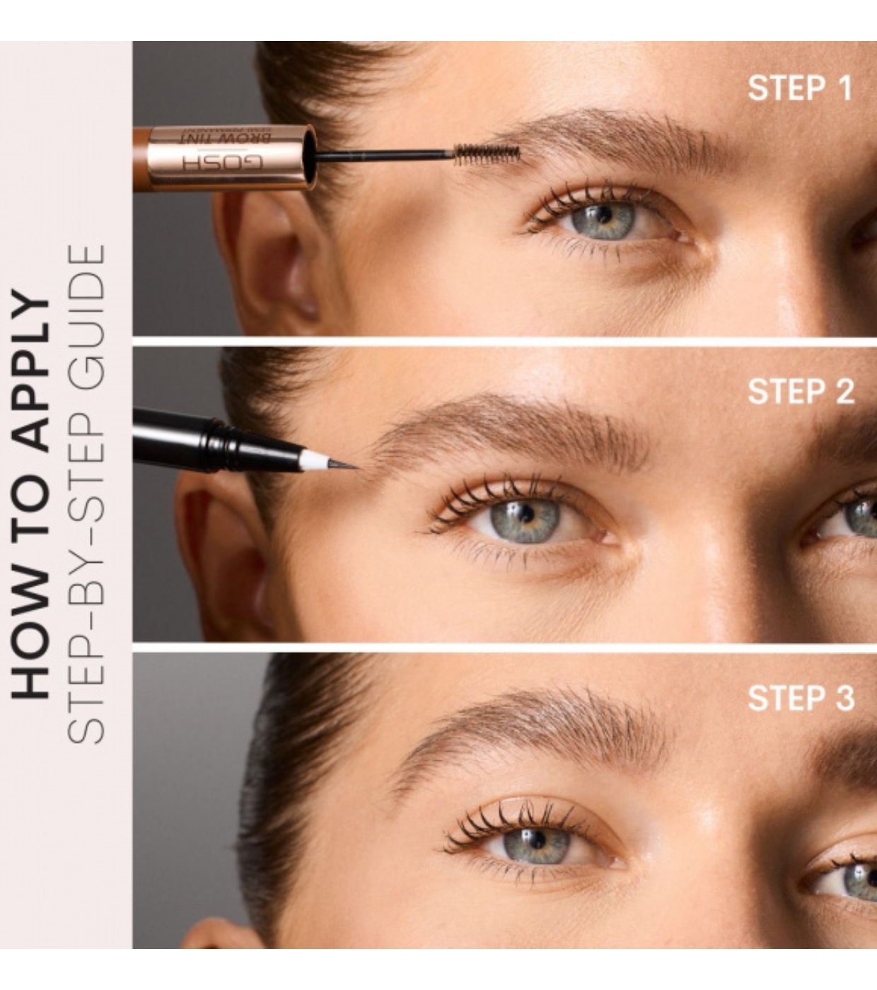 Com uma ponta fina tipo pincel, o delineador cria traços ultrafinos que imitam pelos de verdade, enquanto o gel colorido para sobrancelhas fixa e tinge os pelos sem deixar resíduos, rigidez ou descamação.