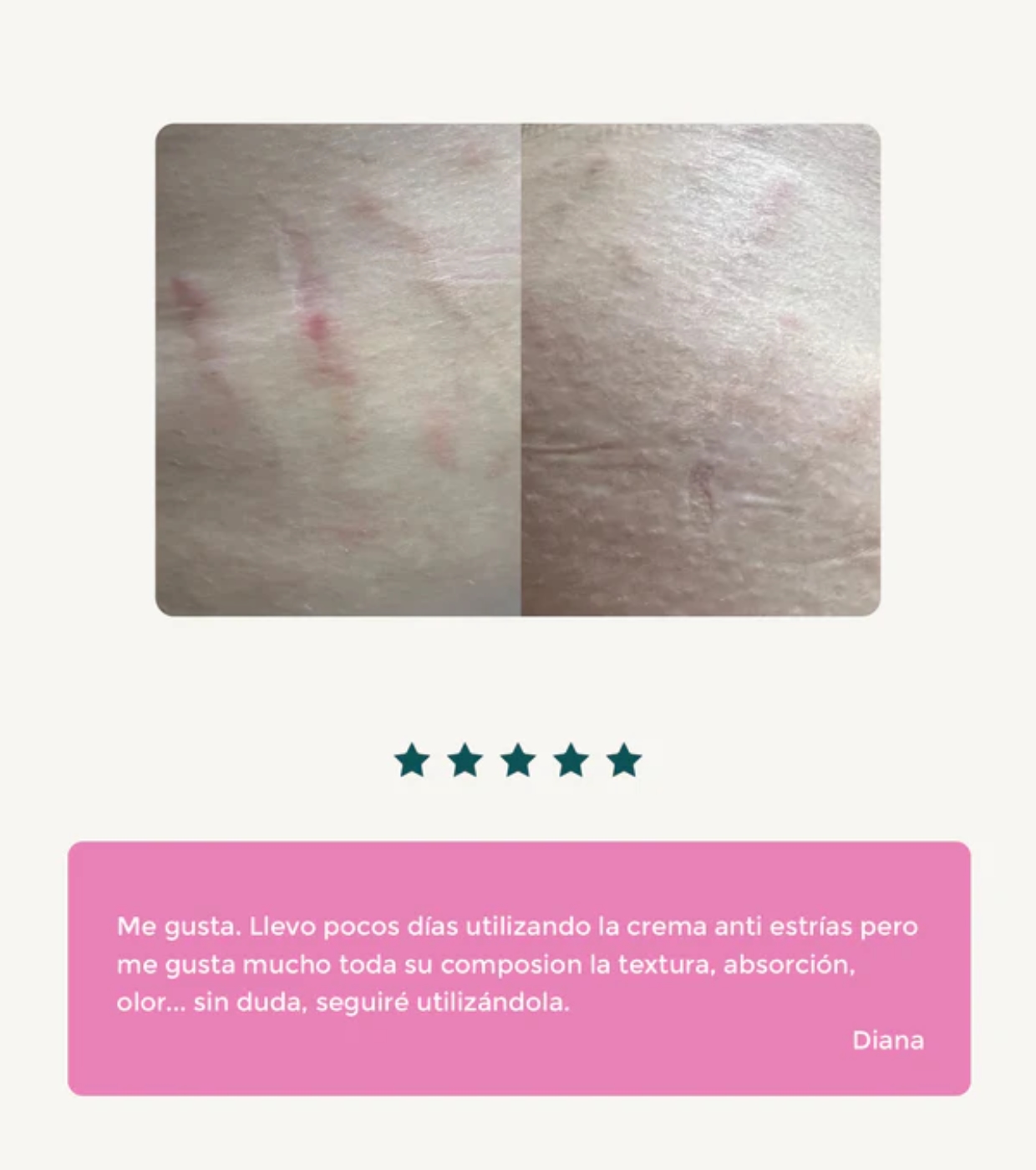 - Reparação: Ajuda a regenerar a pele e melhorar a aparência de estrias existentes.