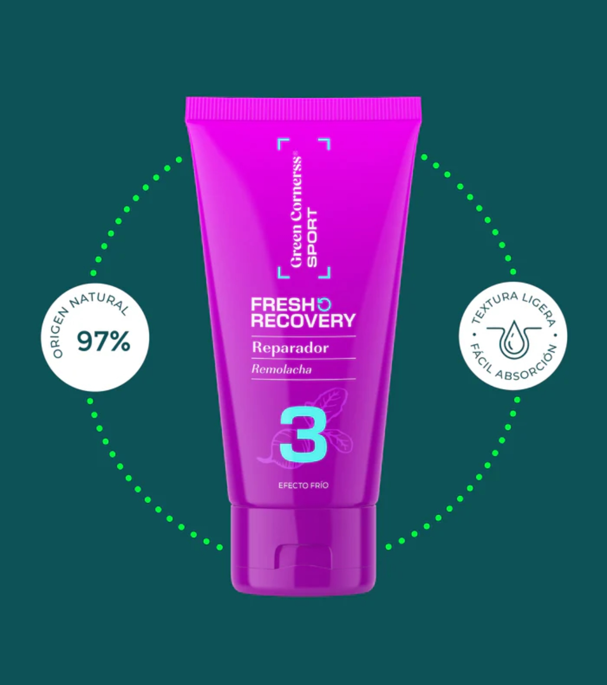 Green Corners O sérum refrescante pós-treino foi formulado com 97% de ingredientes naturais, proporcionando alívio imediato e uma sensação de frescor após exercícios ou atividades físicas.