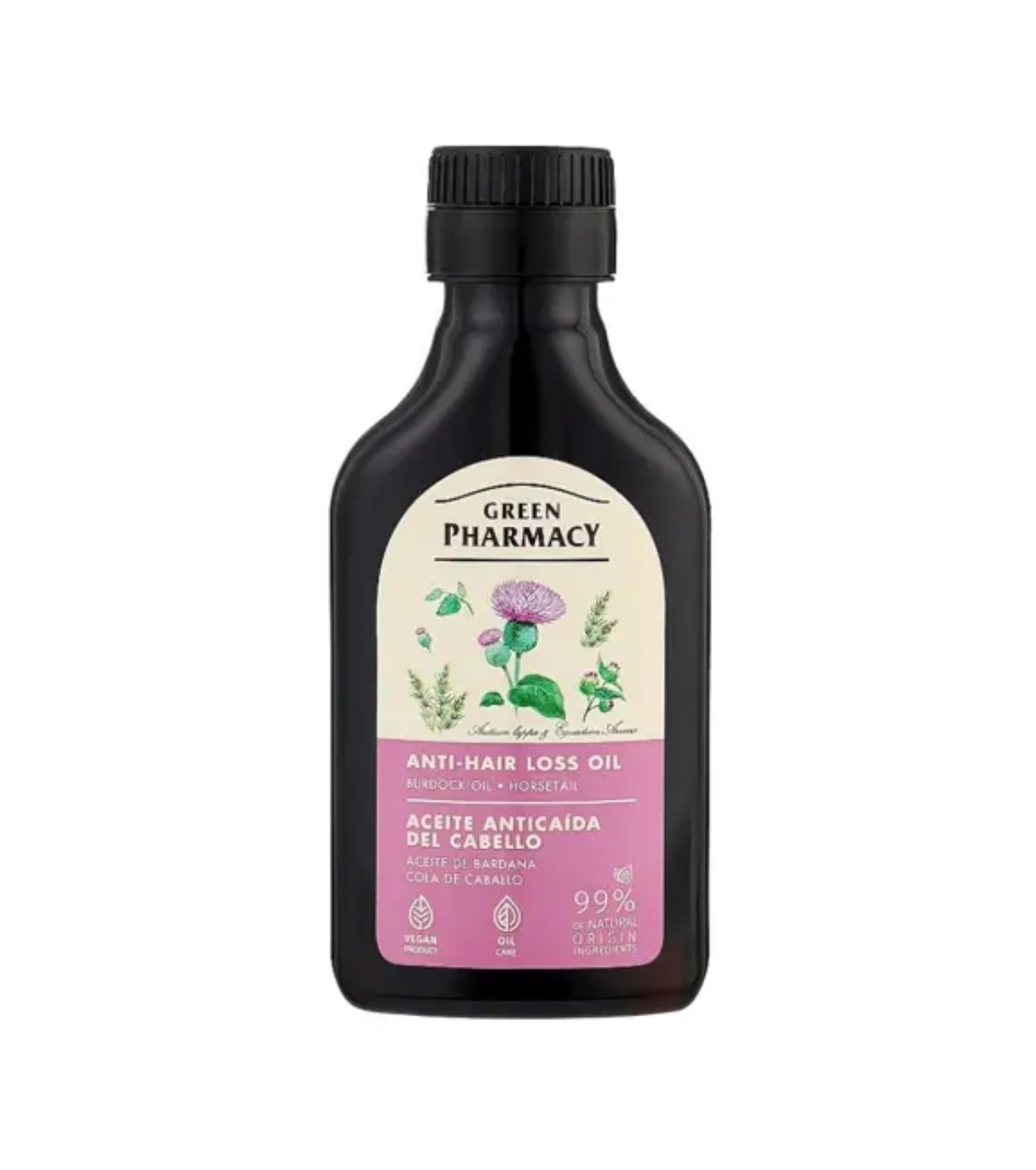 Óleo anti-queda com cavalinha da Green Pharmacy .
