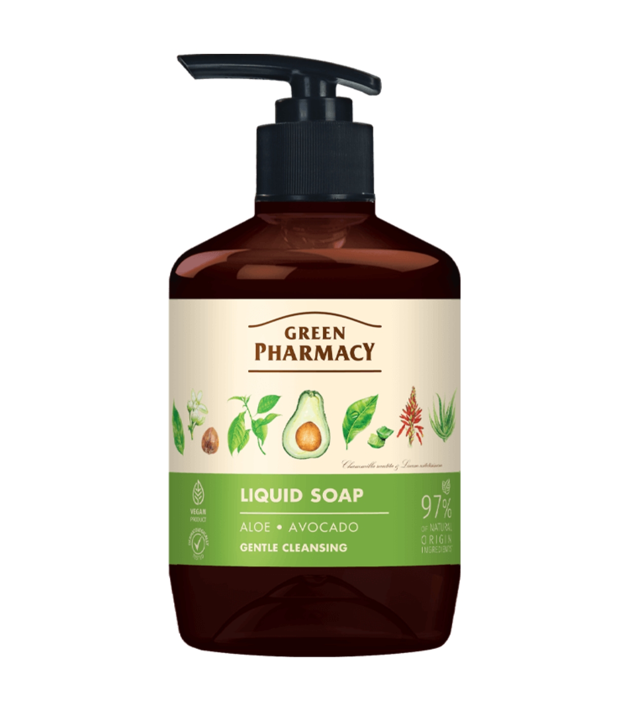 Green Pharmacy O Sabonete Líquido para Mãos de Aloe Vera e Abacate proporciona uma limpeza suave e eficaz, respeitando o equilíbrio natural da pele.
