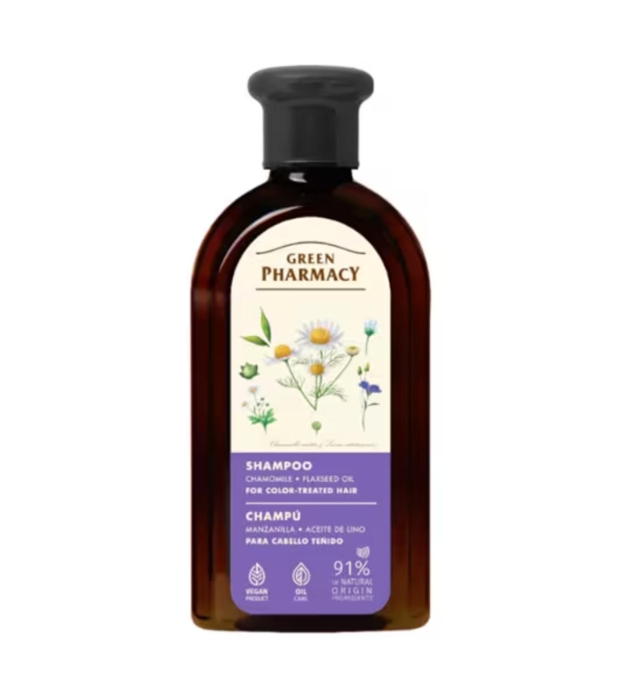 Cuide dos seus cabelos tingidos de forma suave e eficaz com este shampoo enriquecido com extrato de camomila e óleo de linhaça da Green Pharmacy .