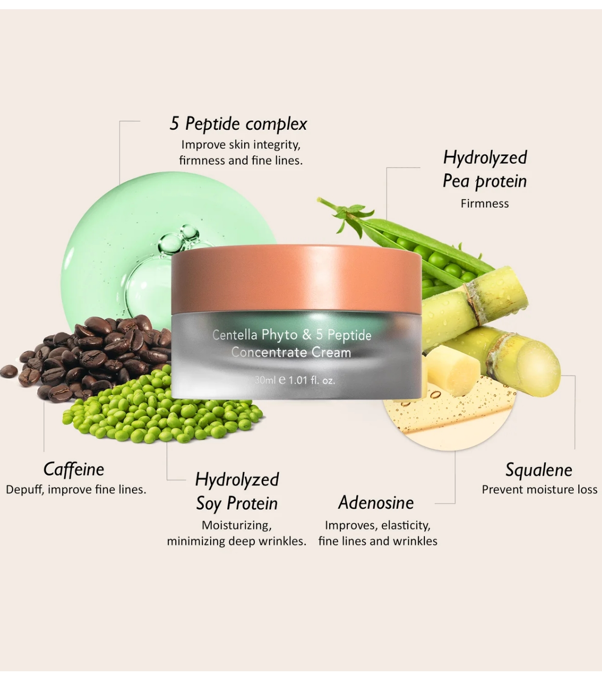 Cuide da sua pele com um creme concentrado multifuncional Centella Phyto & 5 Peptide da Haruharu Wonder que faz tudo.