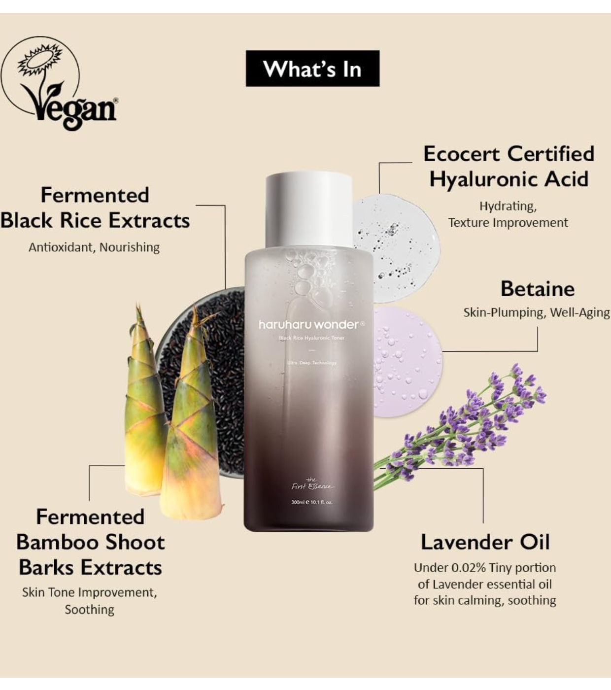 Haruharu Wonder Haruharu Wonder Facial Toner apresenta uma fórmula cremosa e leitosa projetada para restaurar, hidratar e suavizar a pele, melhorando sua elasticidade e barreira protetora.