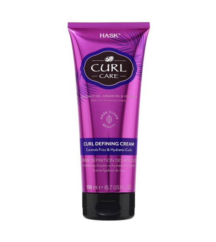 Creme Defining Curl Curl Care da Hask com óleo de coco, óleo de argan e vitamina E.