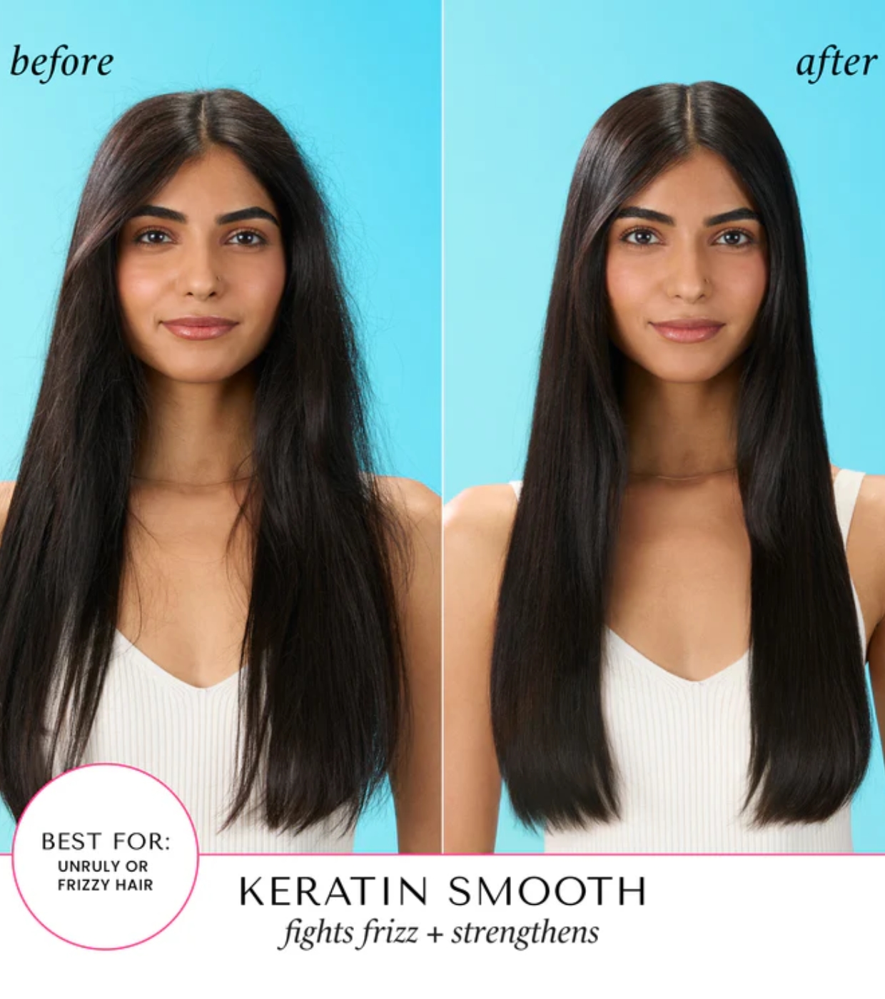 Enriquecido com proteína de queratina, este tratamento capilar ajuda a domar cabelos rebeldes, proporcionando um acabamento mais liso, definido e naturalmente brilhante.