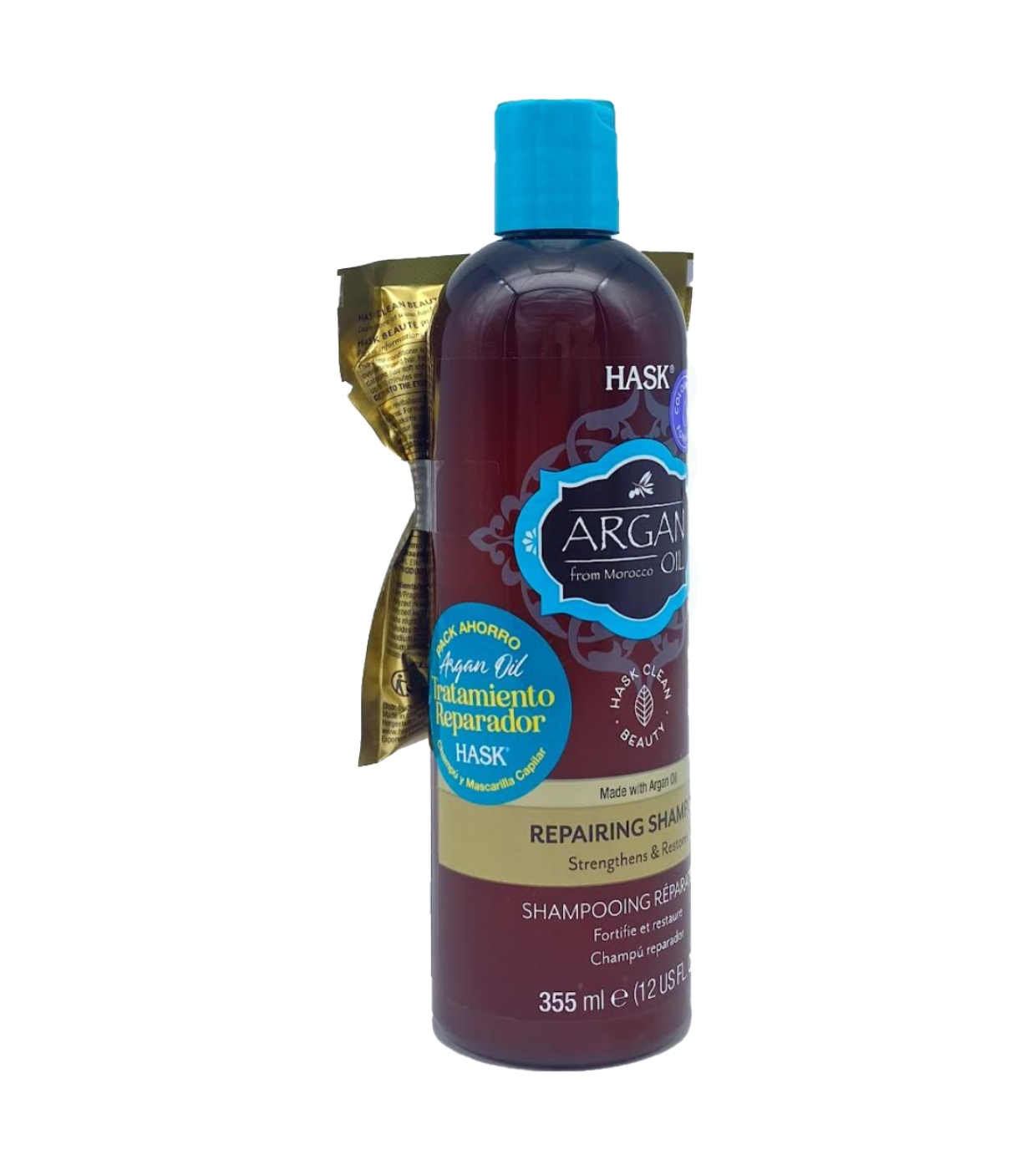 Pacote de poupança shampoo + condicionador reparador Argan Oil da Hask.