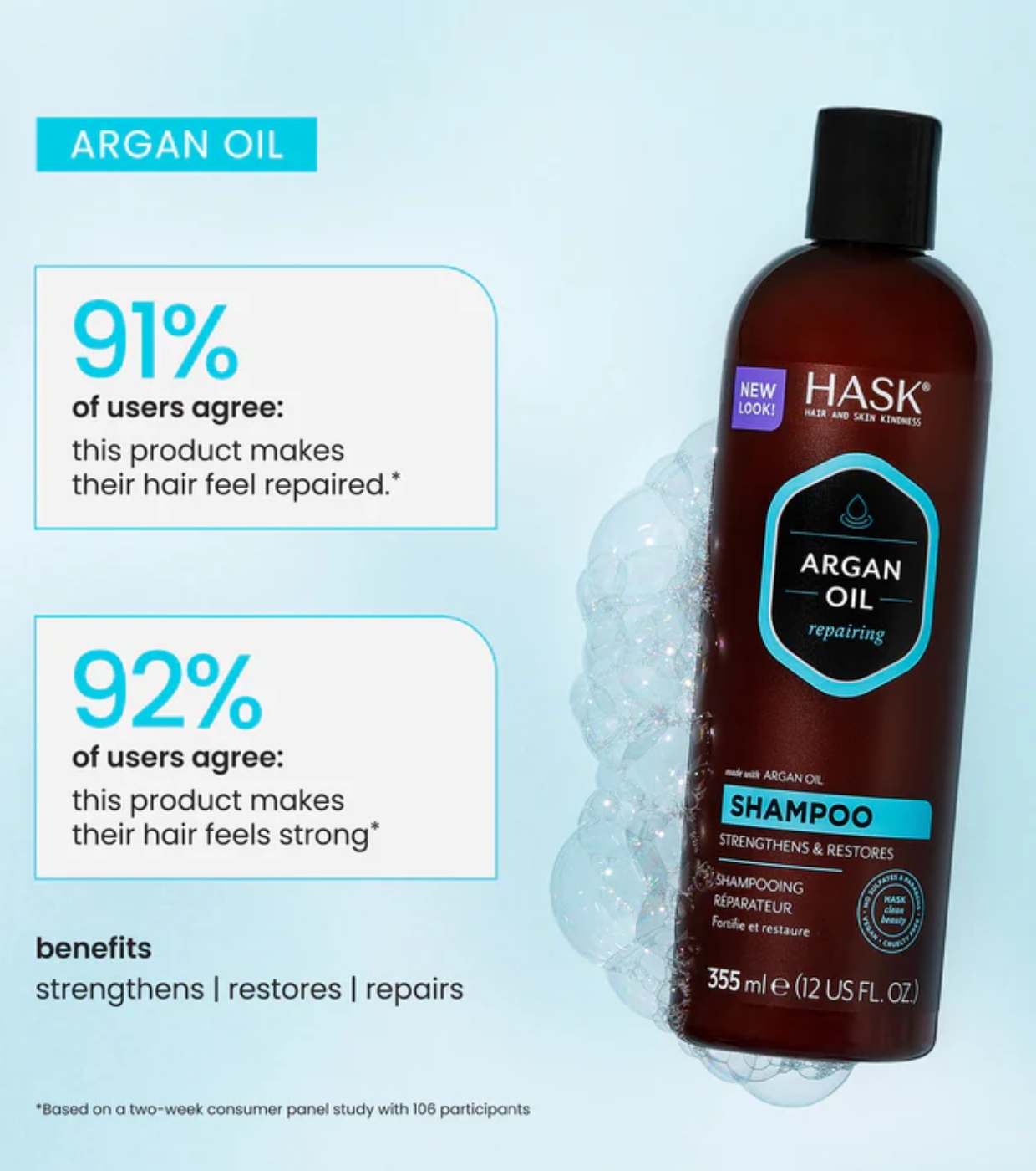 Reviva e restaure a aparência do seu cabelo com shampoo de óleo de argan.