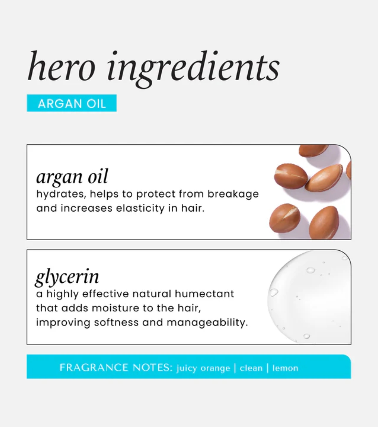Com uma infusão de óleo de argan hidratante, este champô penetra na haste capilar e limpa suavemente, enquanto repara os danos e quebras, deixando o cabelo sedoso e super brilhante.