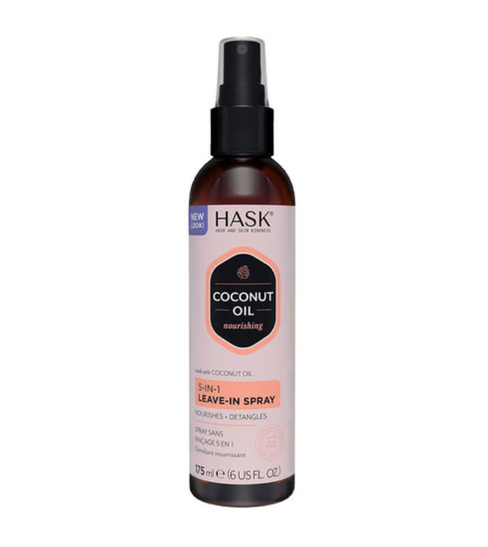 O spray leave-in 5 em 1 da Hask protege o cabelo dos danos térmicos.