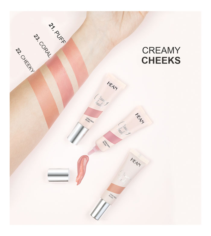 Este blush em creme Creamy Cheeks da Hean é um blush em creme delicado com uma textura rica e agradável que proporciona um efeito natural.