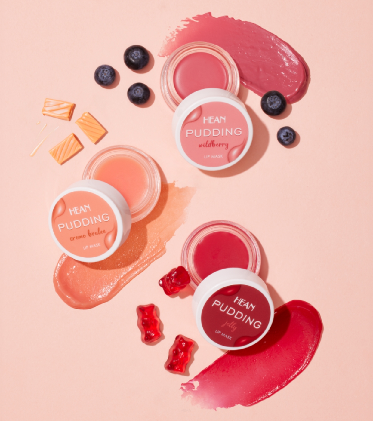 Conheça a máscara labial Pudding da Hean , com uma mistura perfeita de hidratação intensa, maciez sedosa e brilho sutil, ideal para dia e noite.