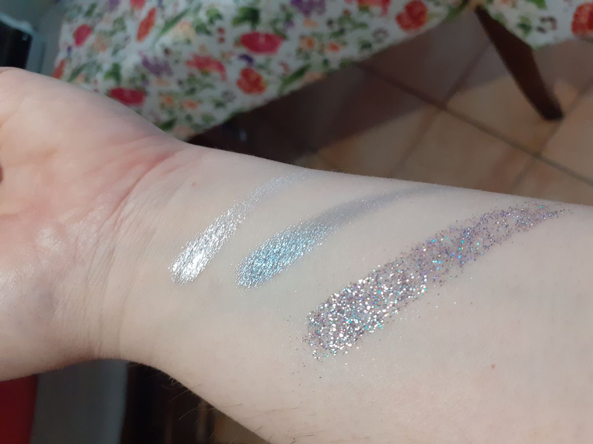 JuliaGlitter granulosi. Difficile da stendere cpn le dita. Costa poco vale poco. Sembra un trucco per bambini a carnevale