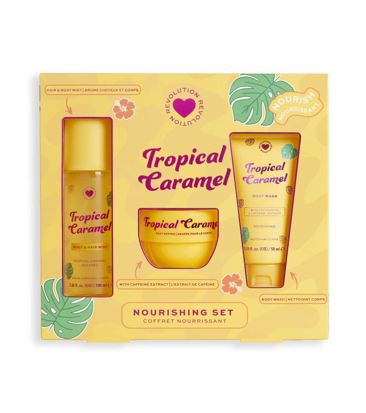 O conjunto de presente I Heart Revolution Tropical Caramel Bath & Body tem tudo que você precisa para cheirar a verão.