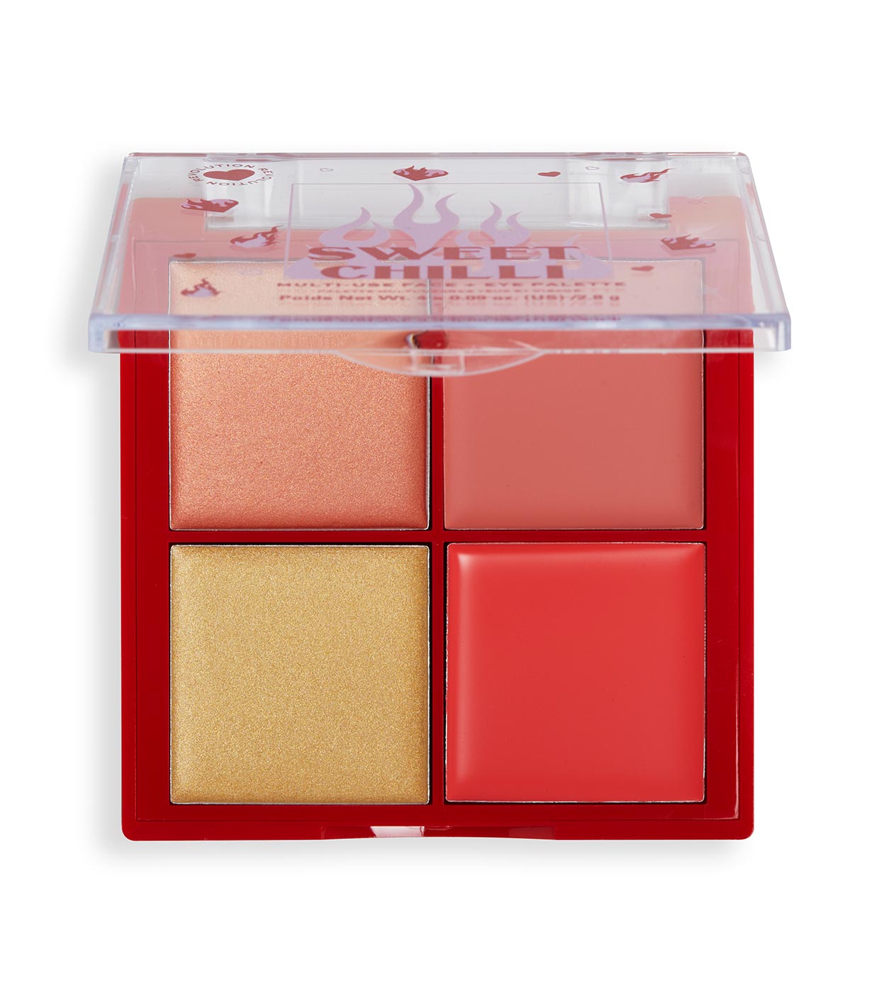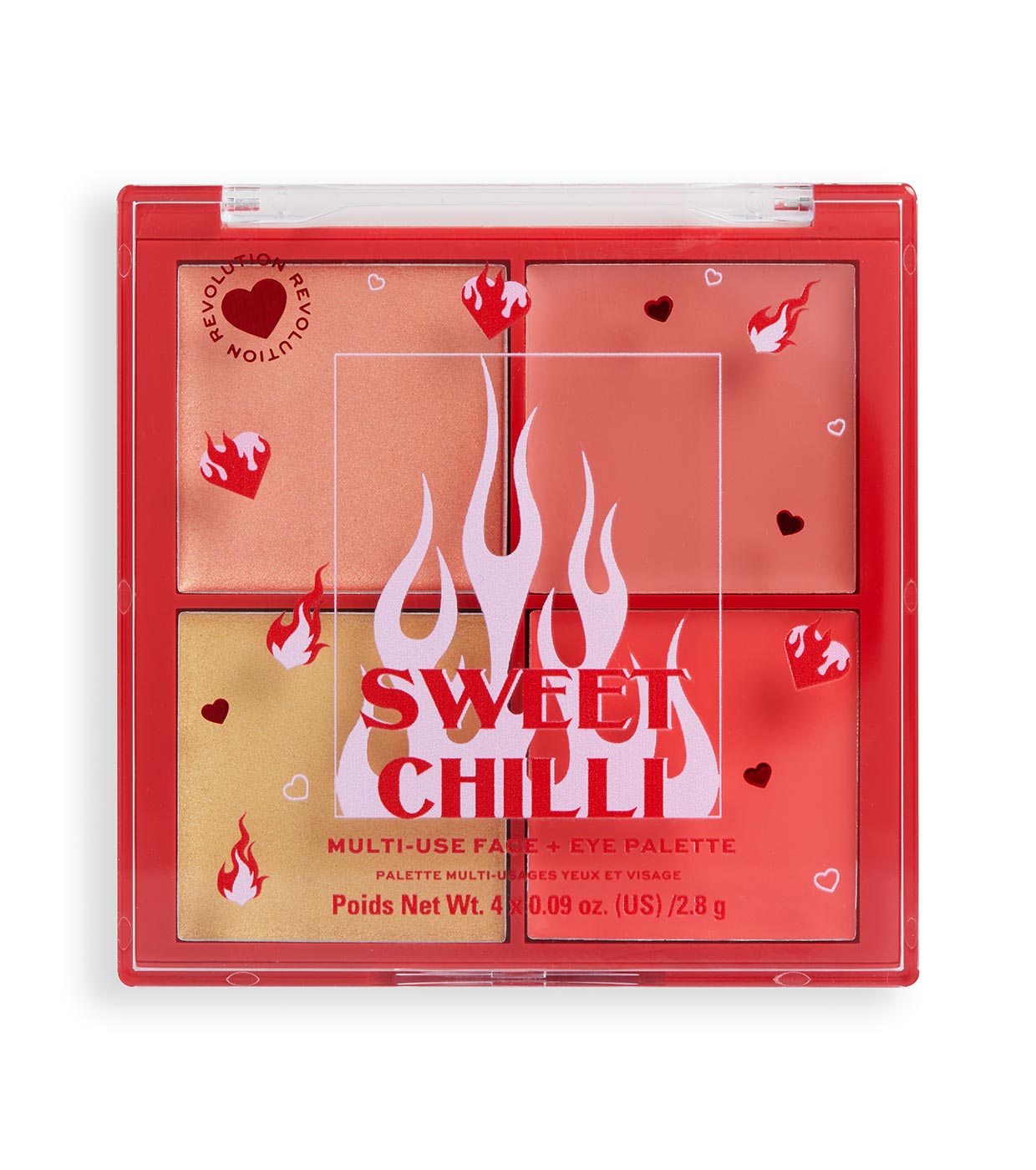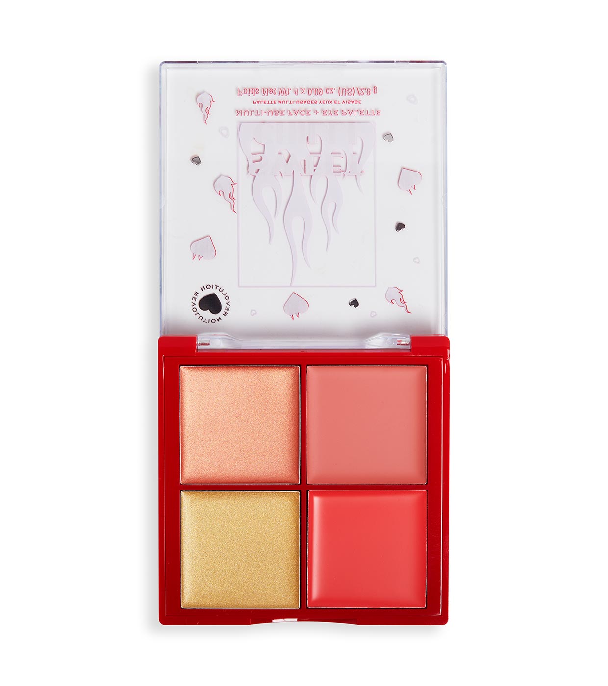 Diga olá ao nosso lançamento mais picante... Revele o seu lado mais glamoroso com as cores intensas da Paleta Multiuso para Rosto e Olhos I Heart Revolution.
