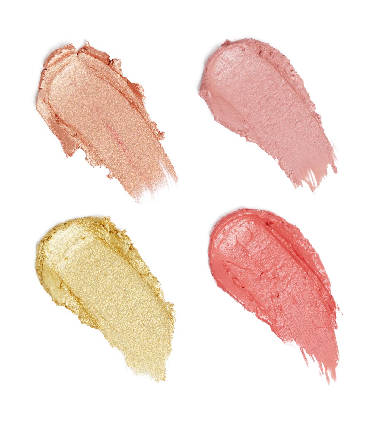 Com dois tons de iluminador e dois tons de blush em acabamento cremoso, esse quádruplo leve combina perfeitamente, iluminando suas bochechas com a cor ou brilho definitivo, garantido para causar ondas de calor!