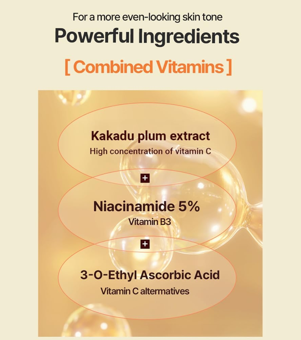 Sua fórmula avançada combina niacinamida (vitamina B3), vitamina C estabilizada e ameixa Kakadu, um superalimento rico em antioxidantes, que trabalham sinergicamente para iluminar, revitalizar e proteger a pele.