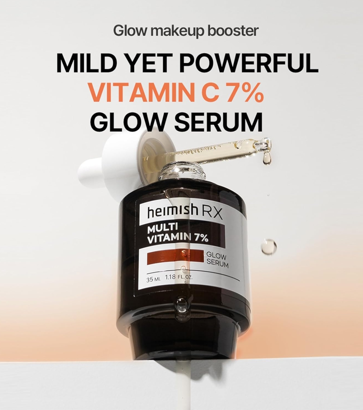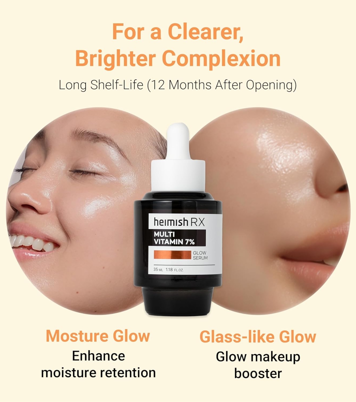 O Heimish RX Multi Vitamin Glow Serum é um sérum iluminador com vitamina C que combina uma forma avançada e estável de vitamina C (ácido 3-O-etil ascórbico) com niacinamida, proporcionando uma pele mais uniforme, radiante e saudável.