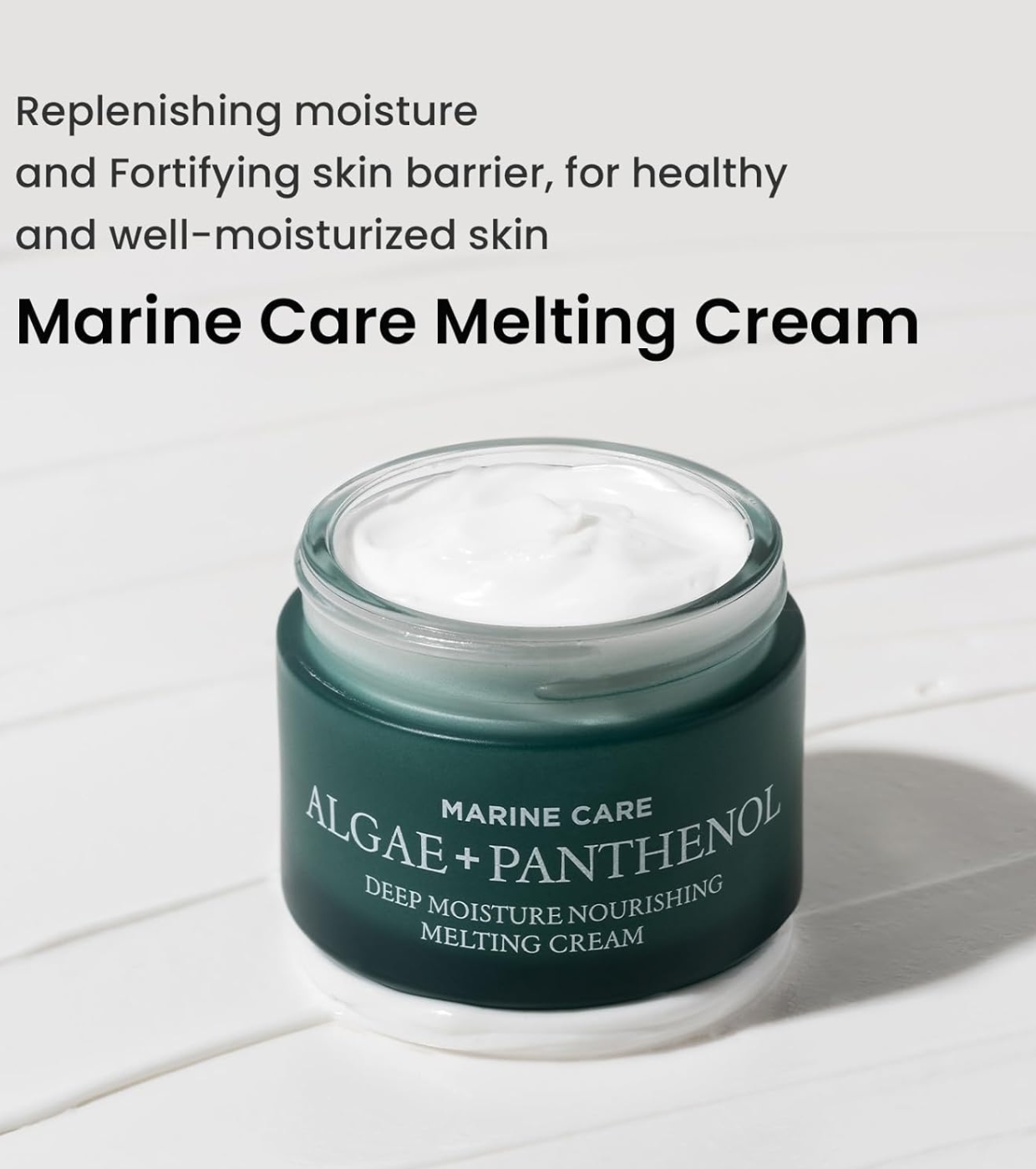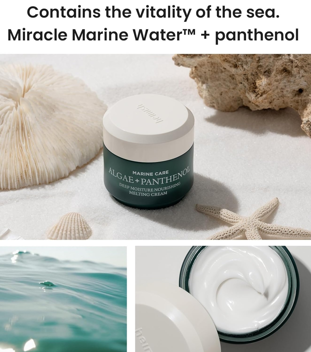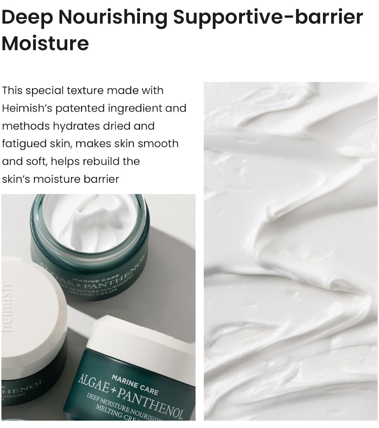 Descubra Heimish Marine Care Deep Moisture Nourishing Melting Cream , um creme facial nutritivo e derretível que oferece hidratação profunda e duradoura.