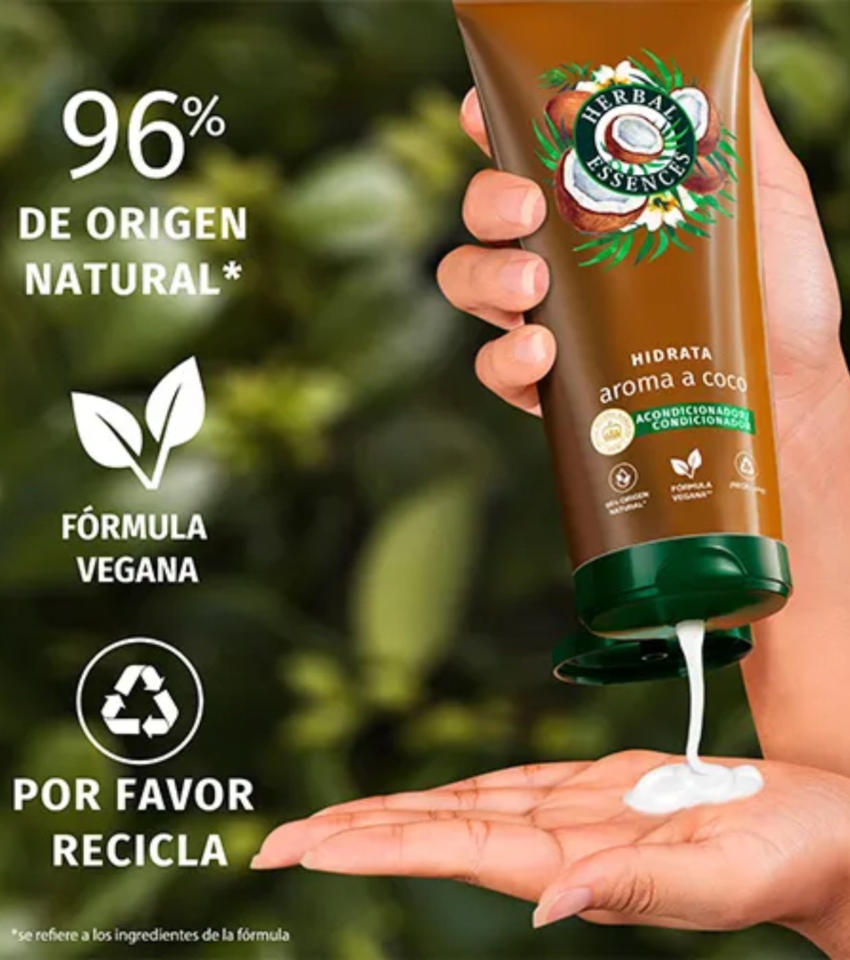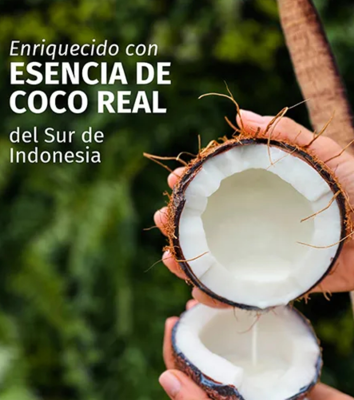 coconut scent O condicionador hidratante com aroma de coco ajuda a dar vida novamente ao cabelo.