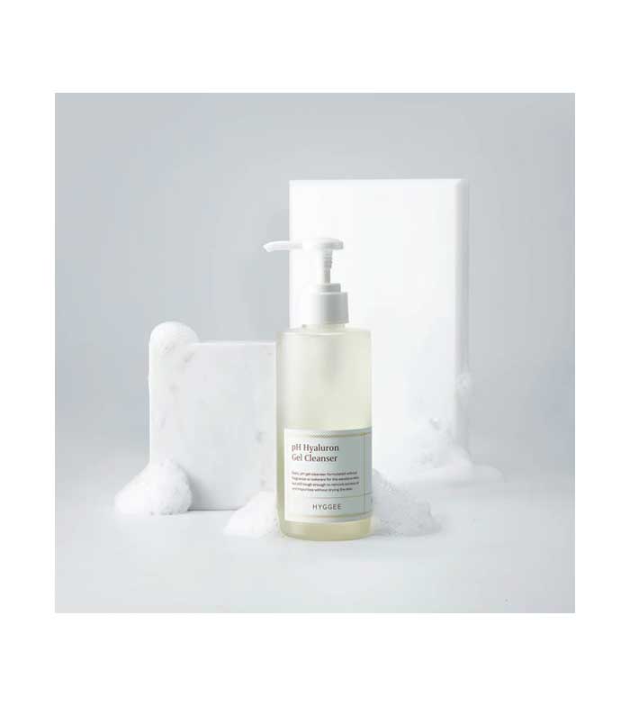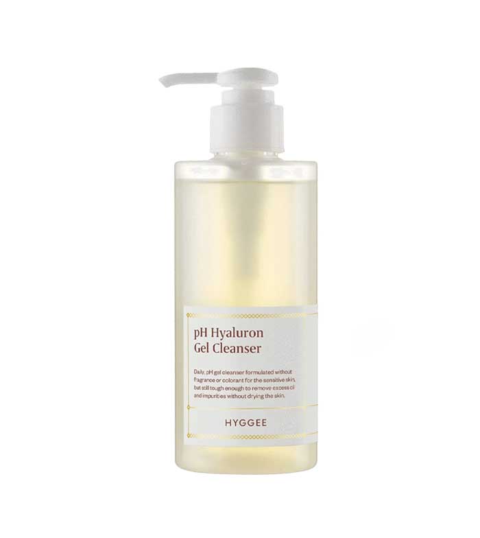 pH Hyaluron Gel Cleanser da Hyggee é um gel de limpeza facial com pH neutro que limpa profundamente a pele, remove impurezas e até vestígios de maquilhagem, sem irritar nem secar a pele.