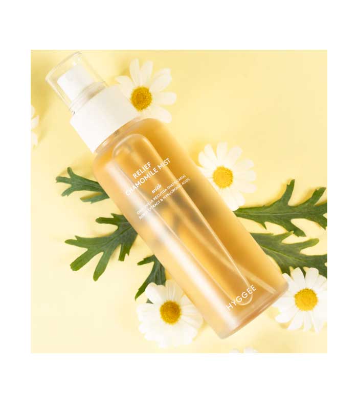 Névoa facial hidratante Relief Chamomile Mist da Hyggee com camomila, ácido hialurônico e esqualano.