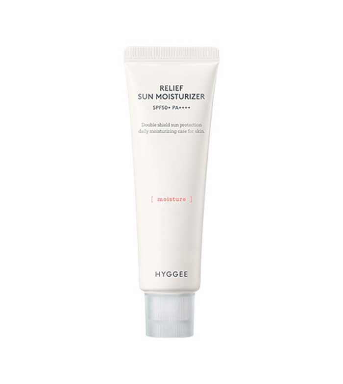 Protetor solar facial hidratante SPF50+ Relief Sun Moisturizer da Hyggee .