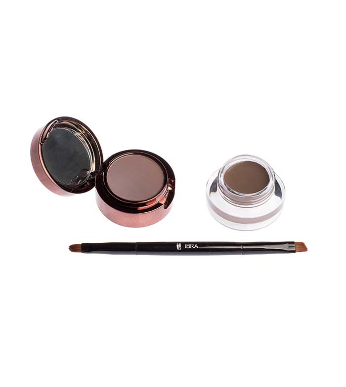 Este produto inclui uma parte creme, com a qual você pode preencher e modelar as sobrancelhas, e uma parte em pó, para selá-las e obter uma aparência natural.
