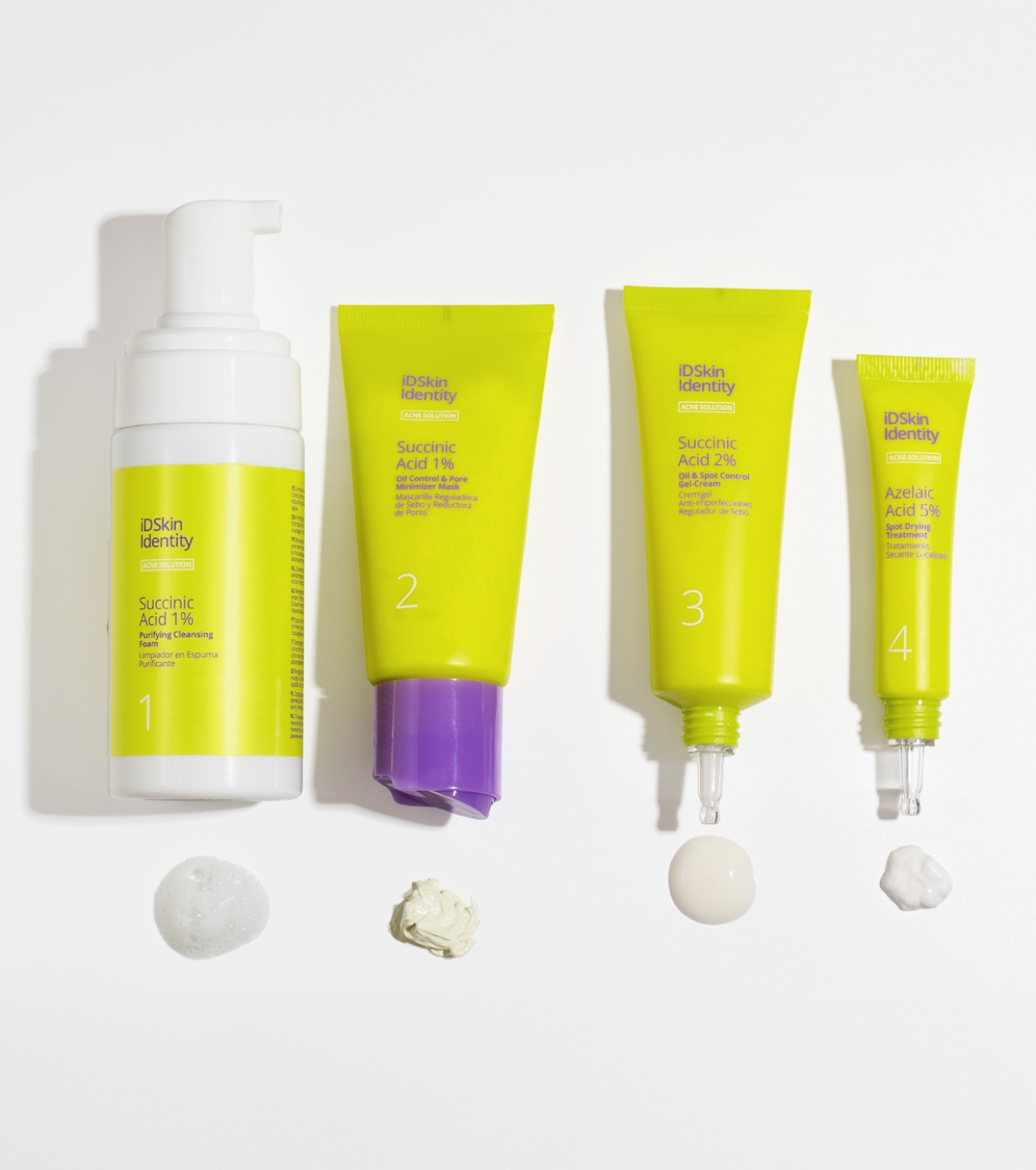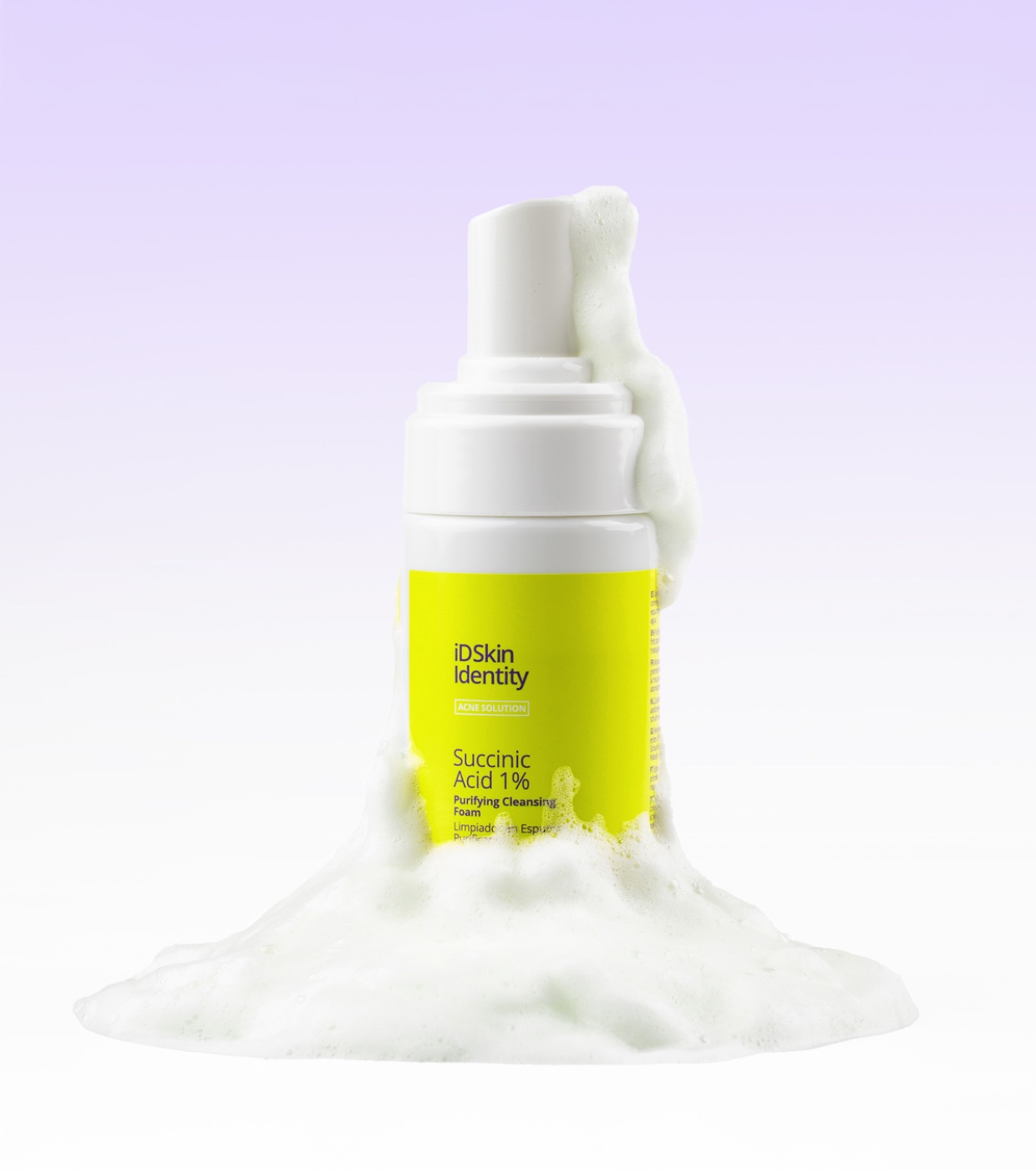 ID Skin Identity A espuma de limpeza com ácido succínico 1% é um limpador facial inovador que combina a textura leve e suave da espuma com os benefícios purificadores e equilibradores do ácido succínico.