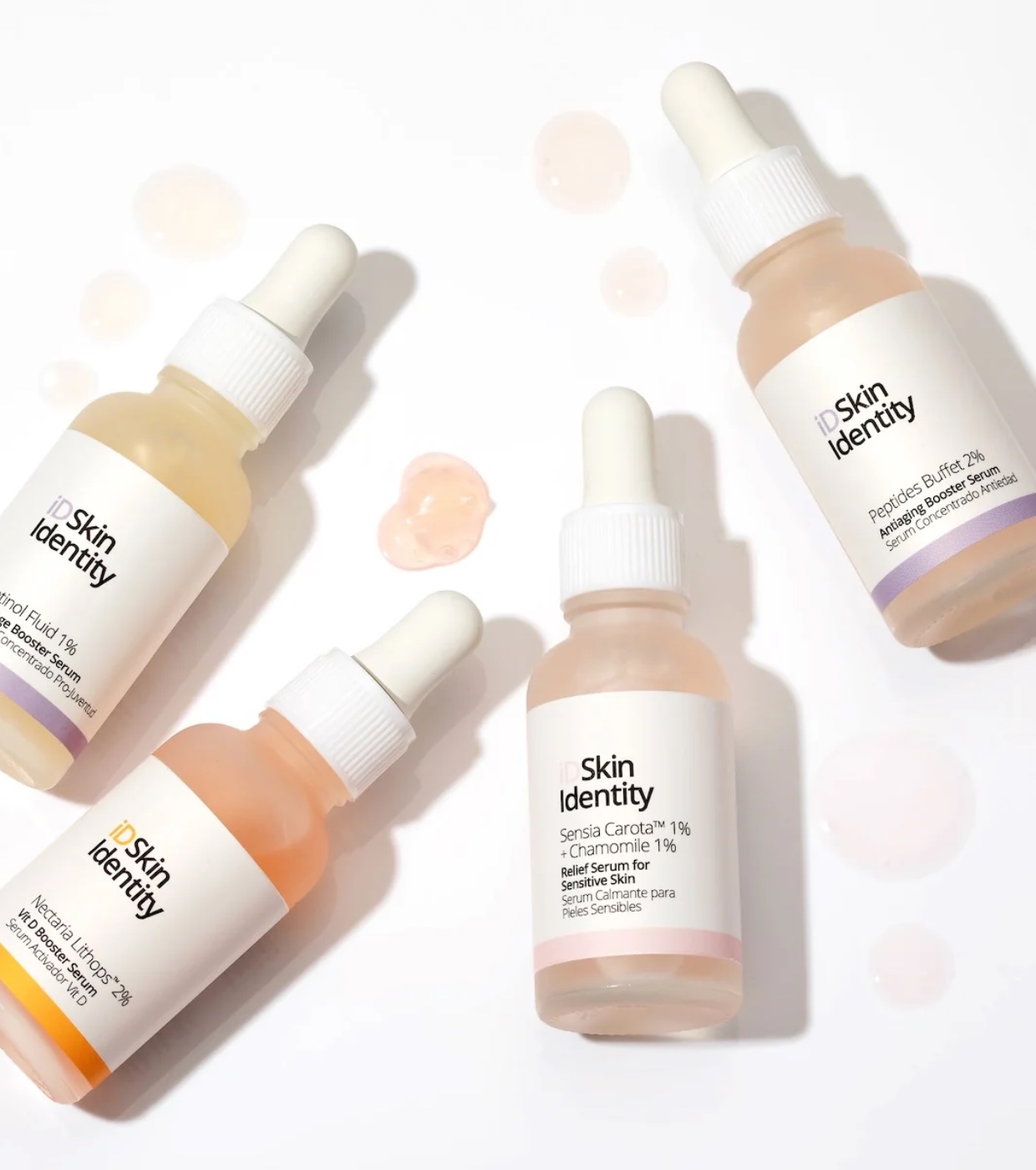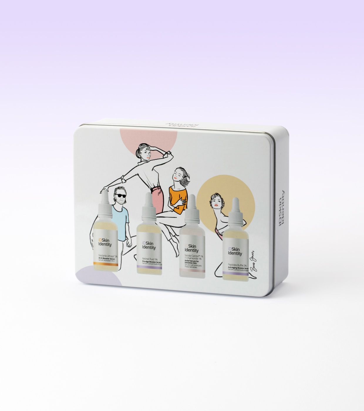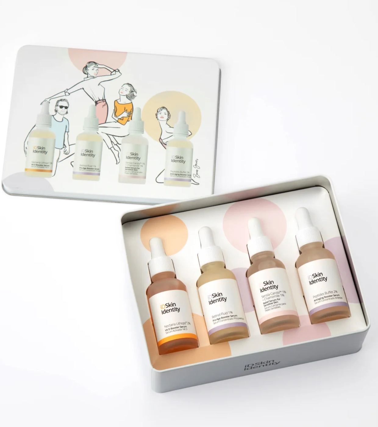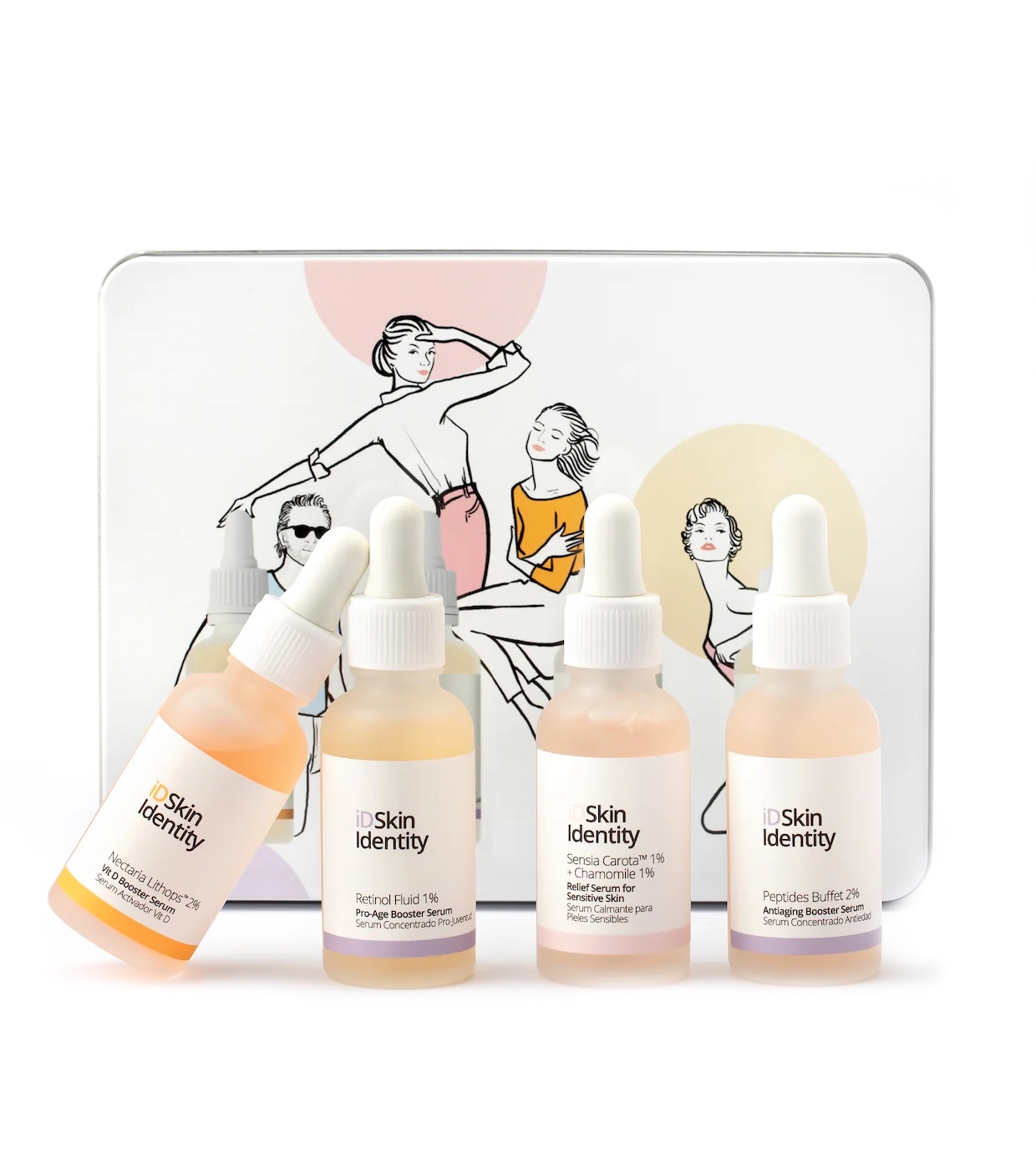 Nova rotina para o cuidado da pele madura da ID Skin Identity com quatro best-sellers da marca, apresentados em um design único e original criado pela artista Beca Jover.