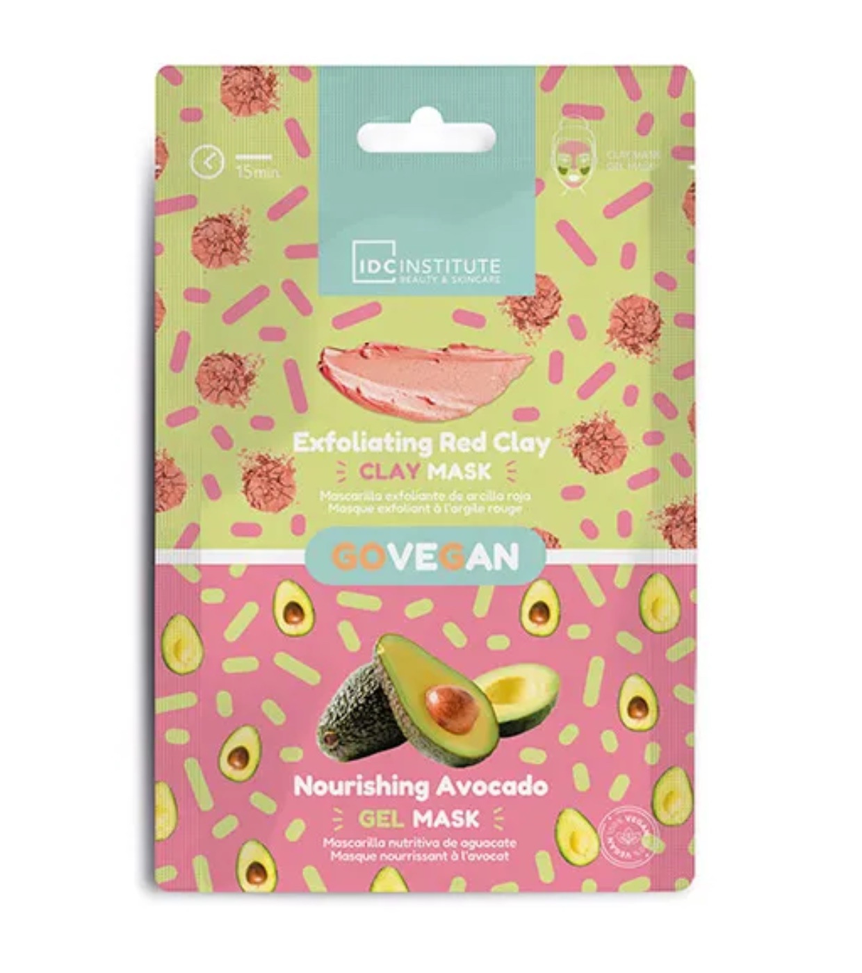 Esta máscara facial esfoliante e nutritiva 2 em 1 de argila vermelha e abacate do IDC Institute é uma jornada rumo a uma pele nutrida.