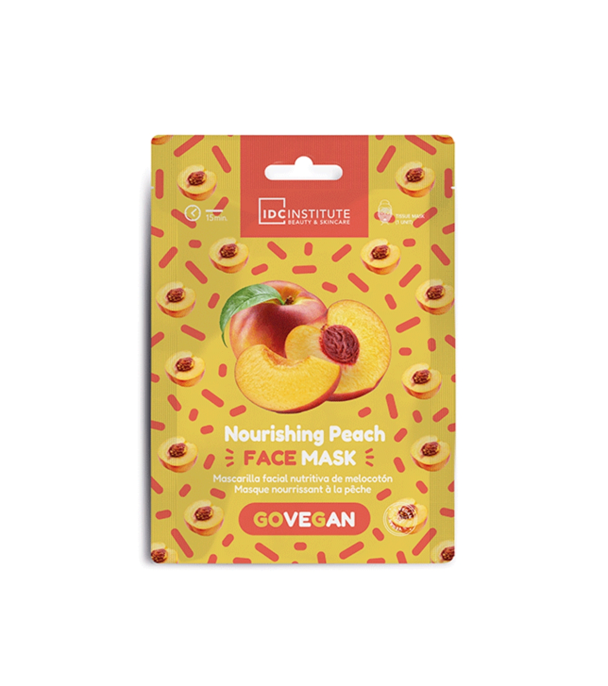 Esta máscara facial de papel IDC Institute é enriquecida com extrato de pêssego, conhecido por suas propriedades purificantes e revitalizantes.