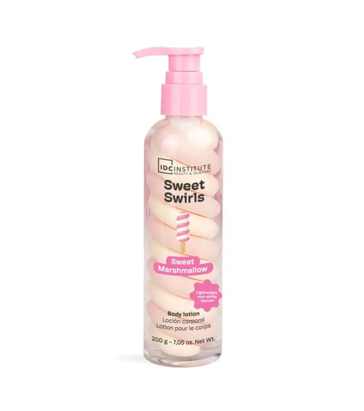 O creme corporal Sweet Swirls Marshmallow do IDC Institute combina hidratação eficaz e uma experiência sensorial em uma única etapa.