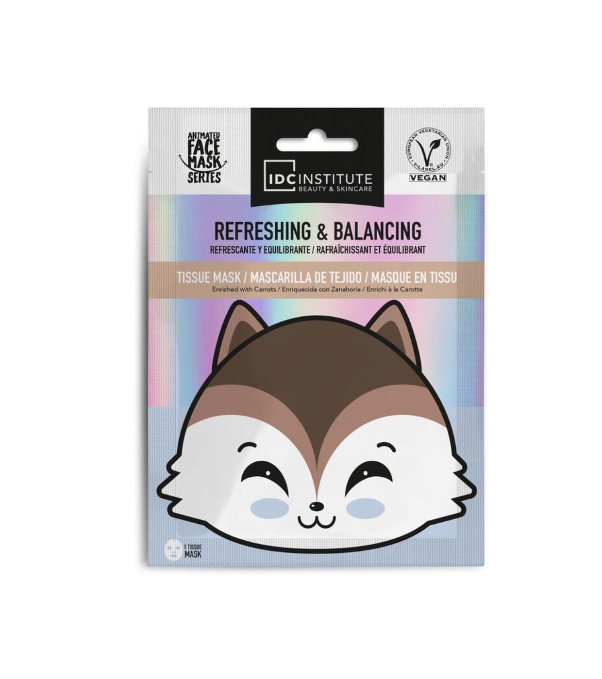 IDC Institute A Máscara Refrescante e Equilibrante contém extrato de cenoura para um tratamento vegano refrescante e purificante que ajuda a equilibrar a produção de sebo e controlar o excesso de oleosidade.
