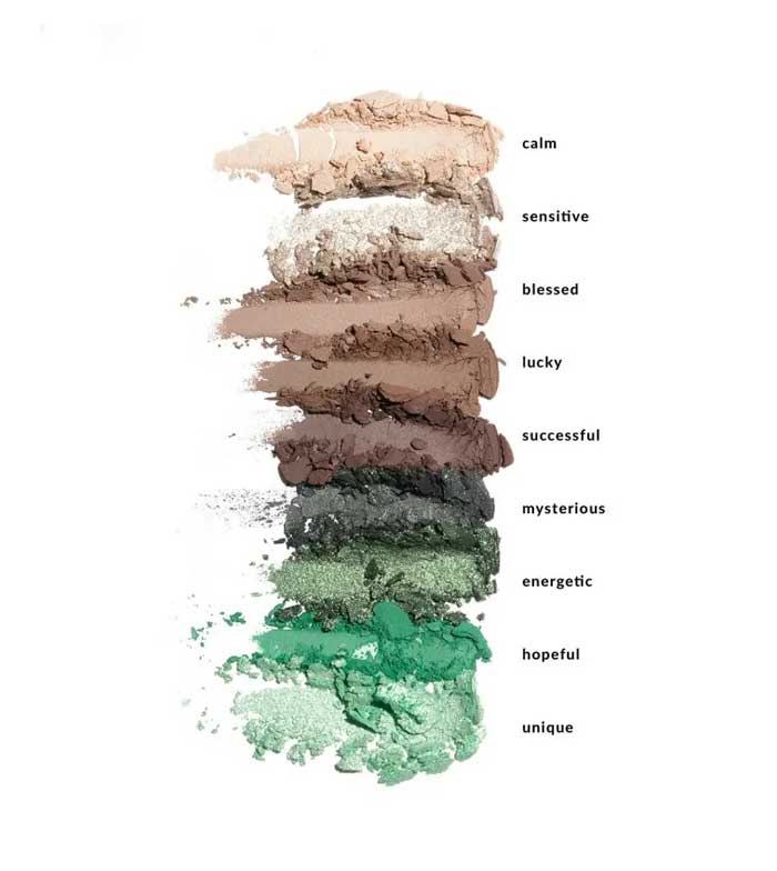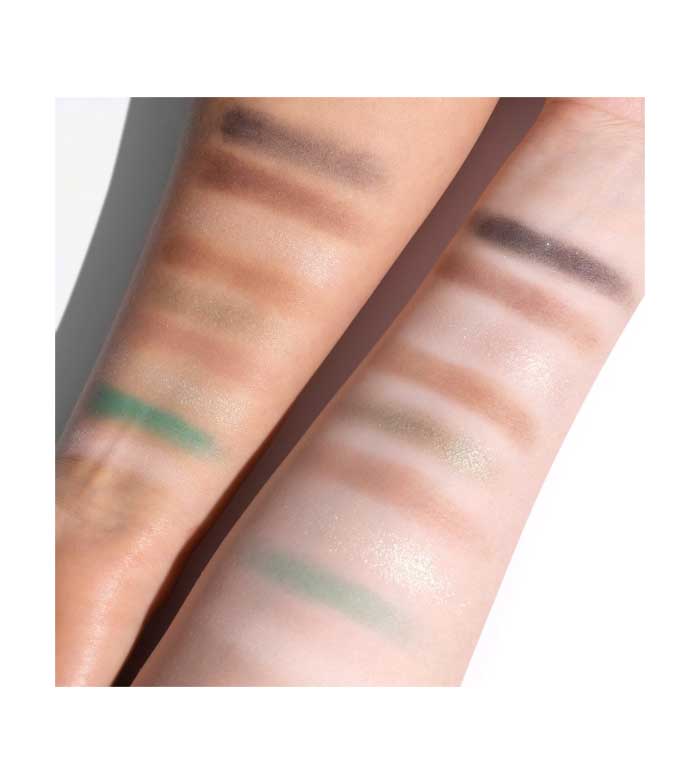 Esta paleta contém 9 sombras em tons frios de verde e castanho que permitem criar uma infinidade de looks, desde os mais clássicos aos mais criativos.