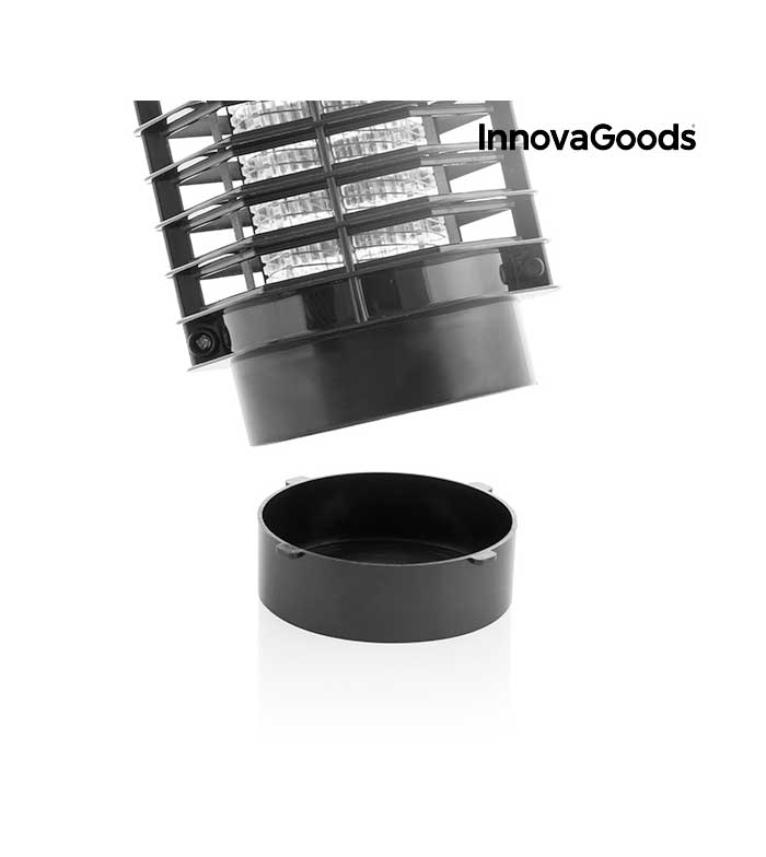 Graças à sua luz UVA, atrai insetos que, ao se aproximarem da rede elétrica interna, são abatidos.