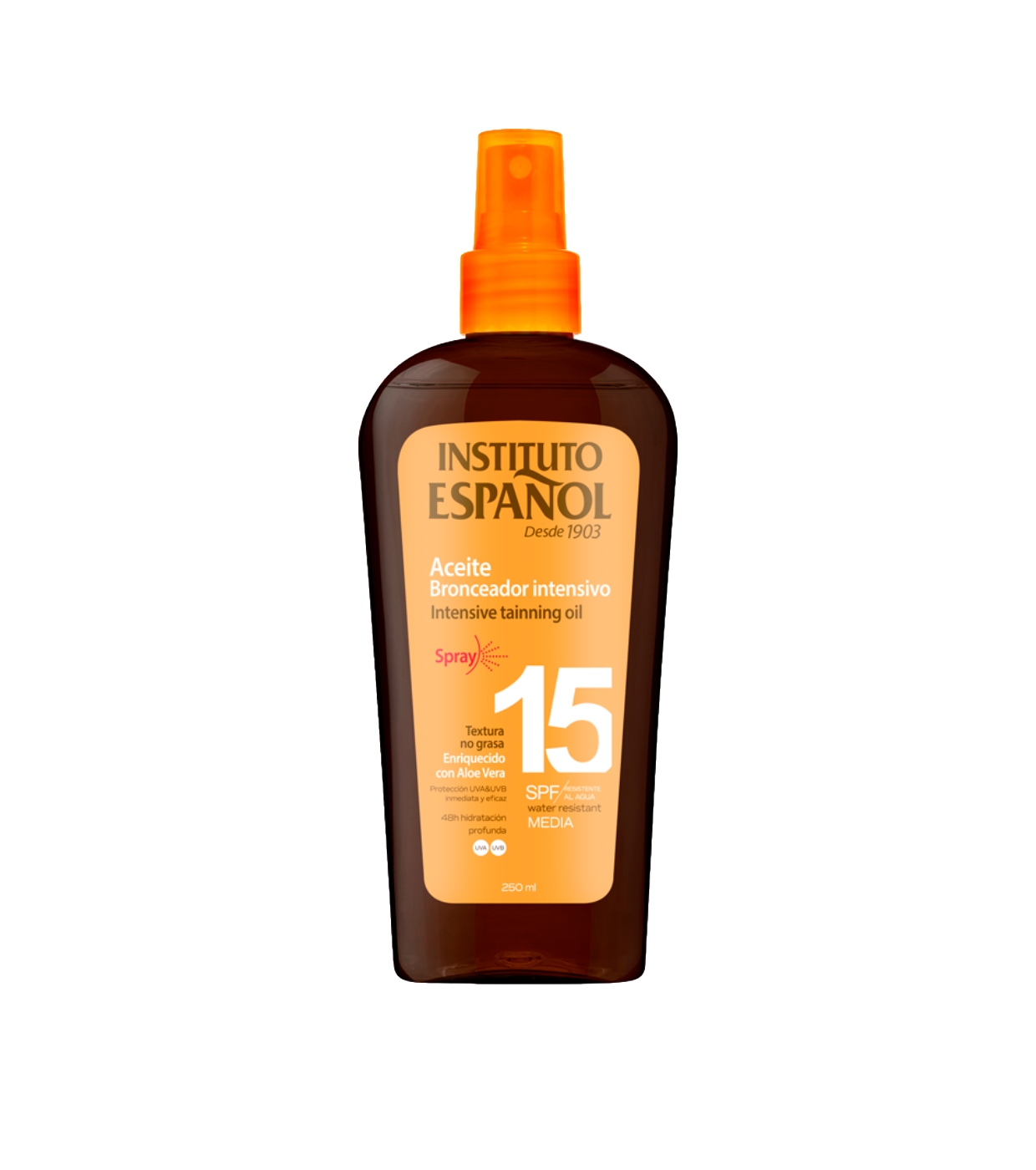 Aproveite o sol enquanto obtém um bronzeado dourado e uniforme com o óleo protetor FPS15 do Instituto Español .