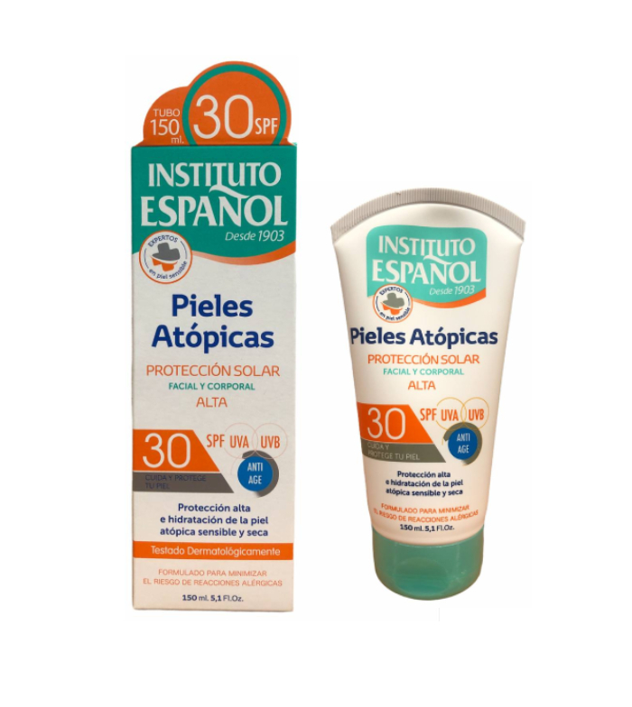 Protetor solar facial e corporal para pele atópica com FPS 30 do Instituto Espanhol.