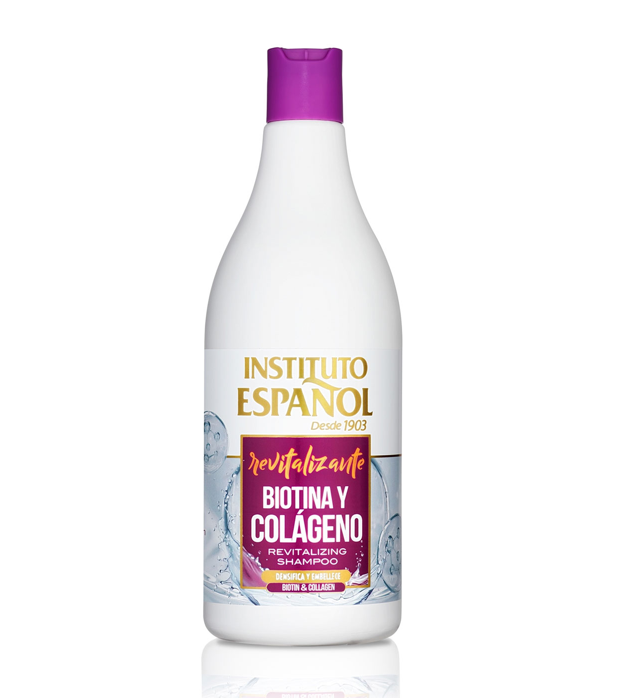 Shampoo revitalizante de biotina e colágeno do Instituto Español.
