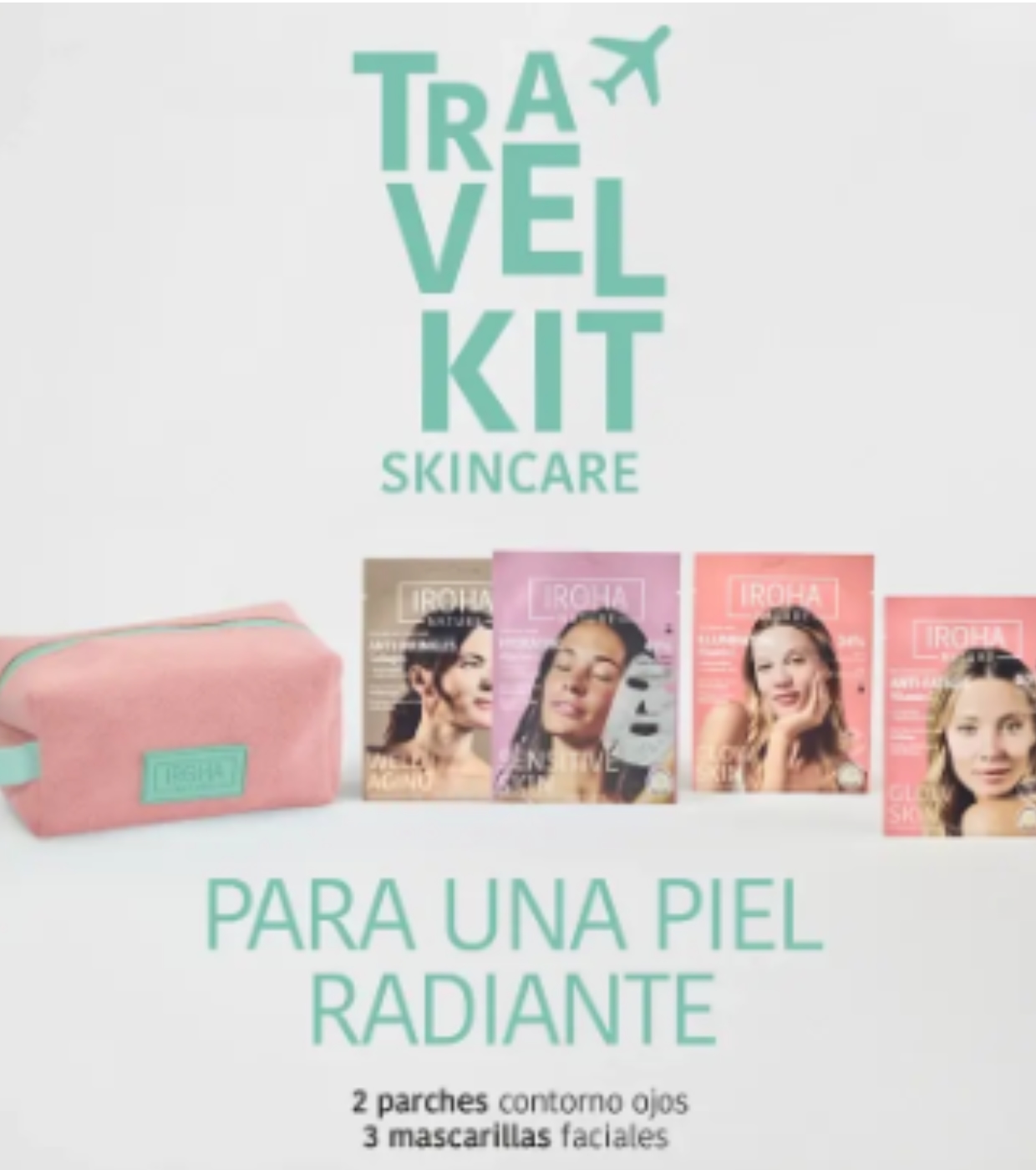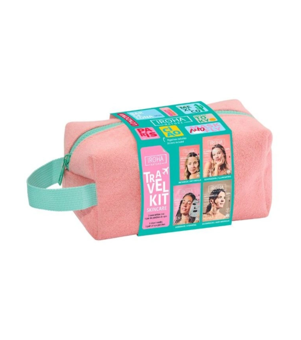 Exiba uma pele radiante onde quer que esteja com o Travel Kit da IROHA NATURE , um conjunto completo e prático de cuidados faciais que reúne seus itens essenciais de beleza em uma exclusiva bolsa de higiene pessoal feita de tecido de toalha, macia e fácil de transportar.