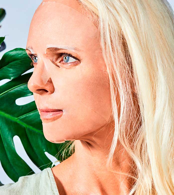 A máscara é 100% biodegradável e vegana. Perfeito para peles maduras e para prevenir os primeiros sinais de envelhecimento.