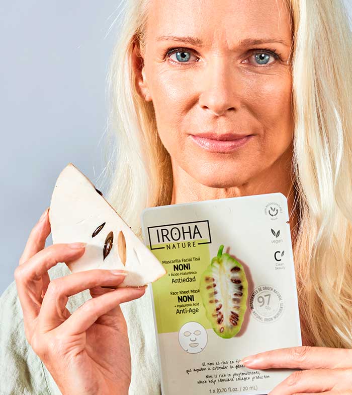 Entre seus ingredientes ativos está o Noni, uma planta rica em nutrientes que inclui vitamina A e C, flavonóides, potássio, ácido linoleico e aminoácidos, e ajuda a melhorar o tônus e a elasticidade da pele, reduzindo assim as linhas finas.