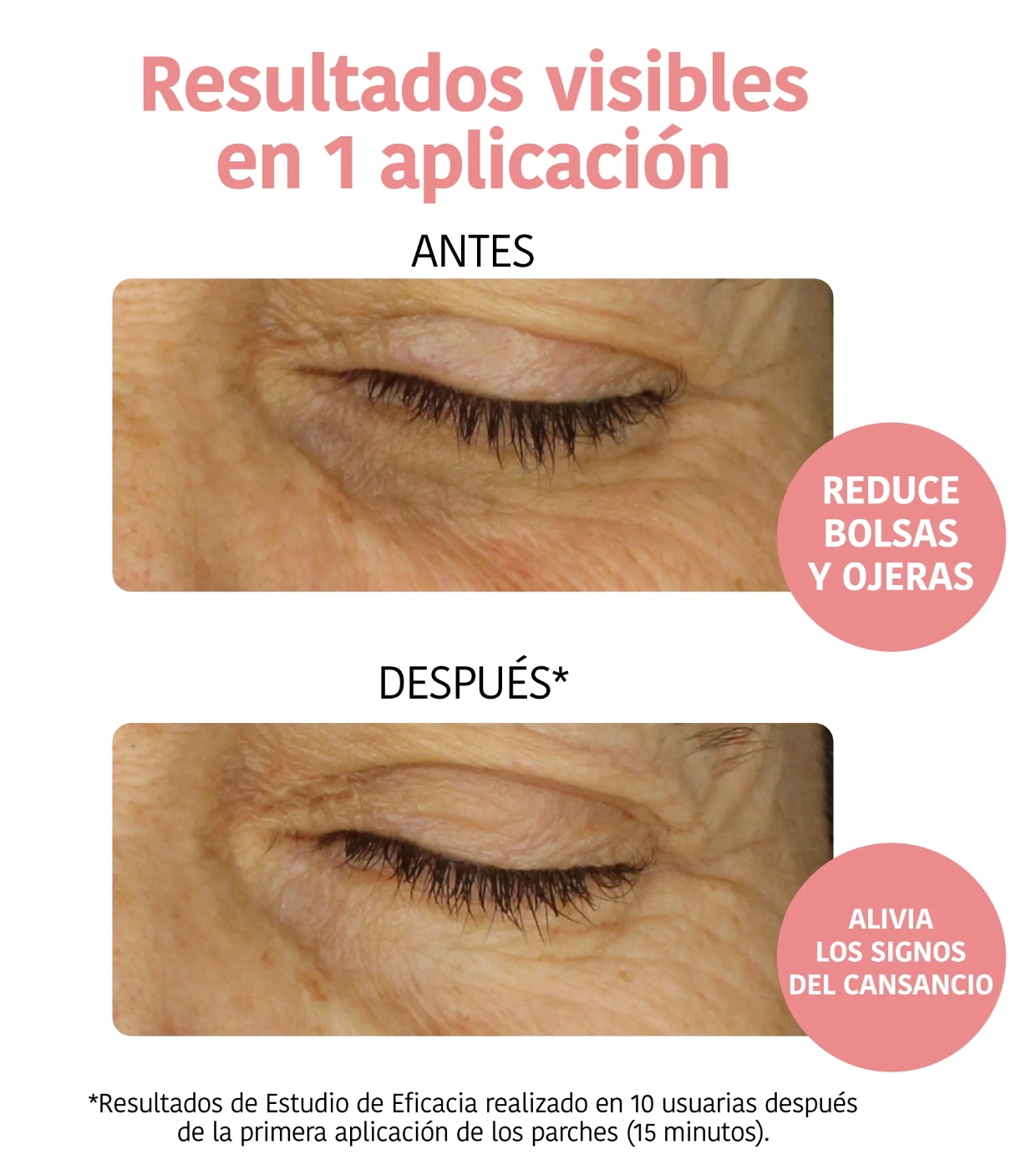Esses patches ajudam a reduzir os sinais de fadiga, melhorando a aparência de olheiras e papos e iluminando os olhos opacos.