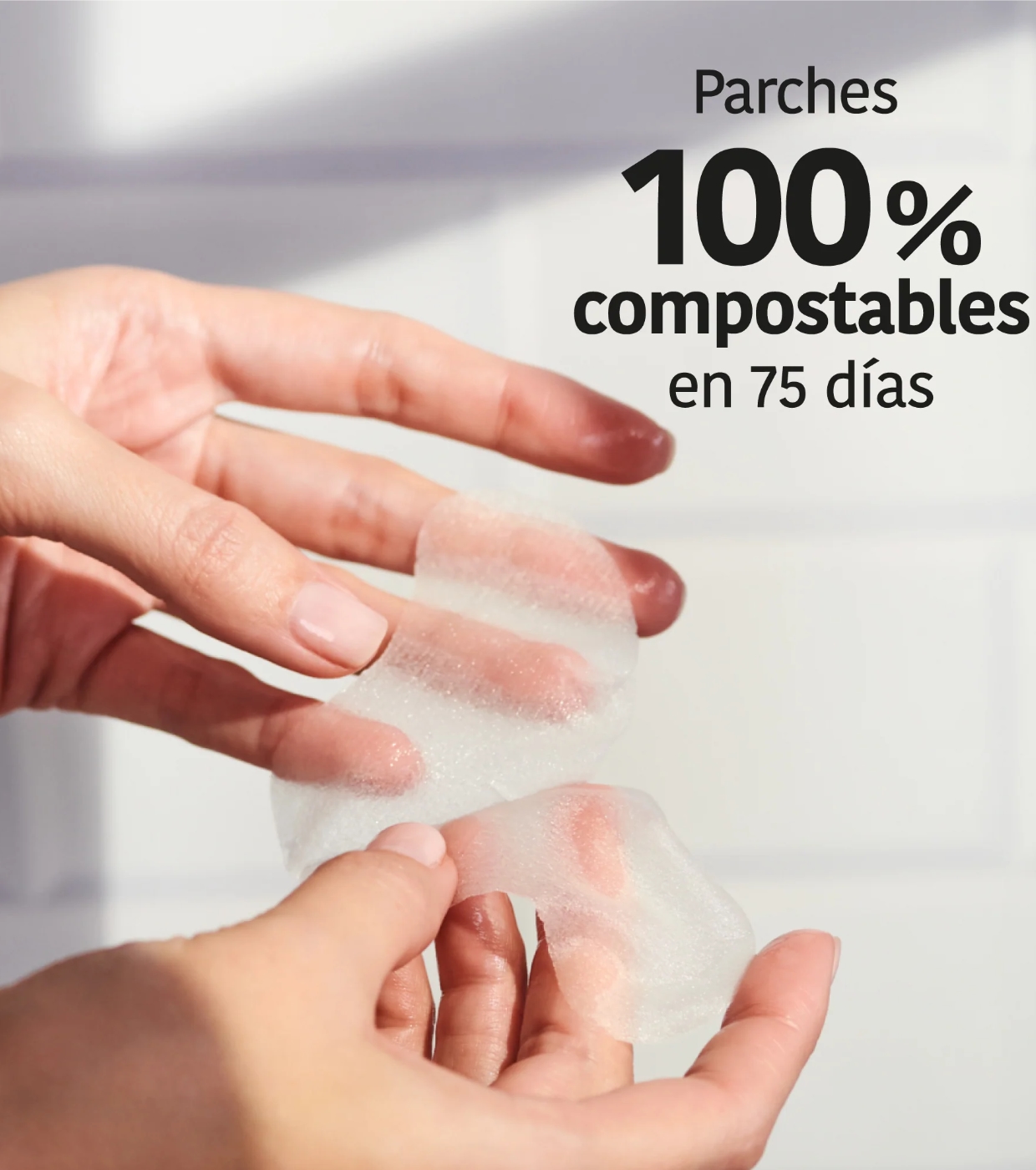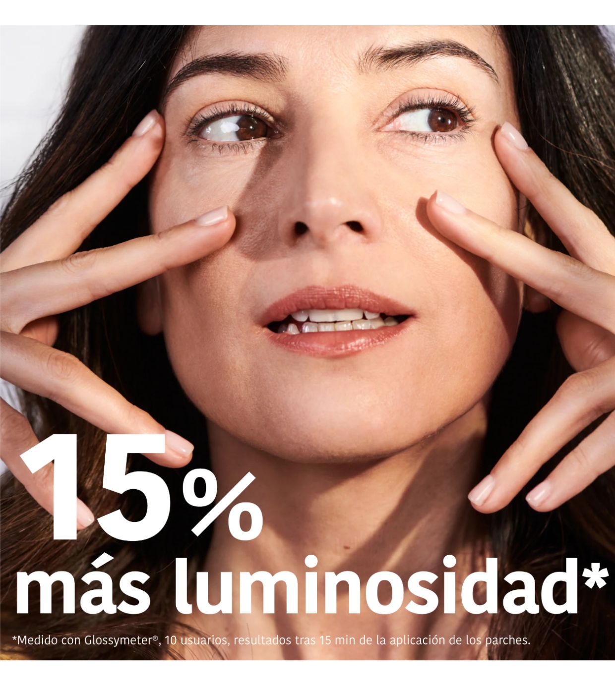Separe os dois adesivos e aplique sob os olhos na pele limpa e seca.