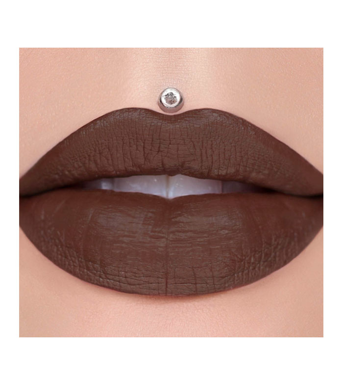 Este Batom Líquido Velour da Jeffree Star Cosmetics fica opaco, seca completamente fosco e permanece por horas graças à sua fórmula de longa duração.